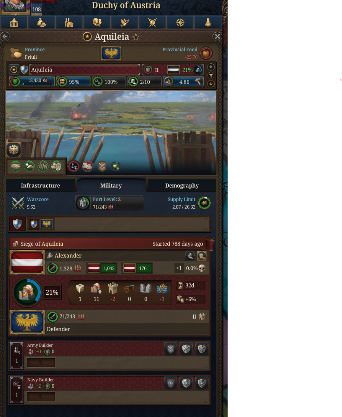 Что и как делать в игре дальше решительно не понятно, собрал целых 50 профессиональных всадников, остальная армия это ополчение из крестьян, вокруг меня бурлит жизнь, соседи захватывают друг друга, а я решительно не понимаю куда мне взлезть, тупо жизнь проходит и из развлечений у меня только интеграция провинций нахуй, здания для профессиональной армии недоступны кроме сержантория который я уже построил