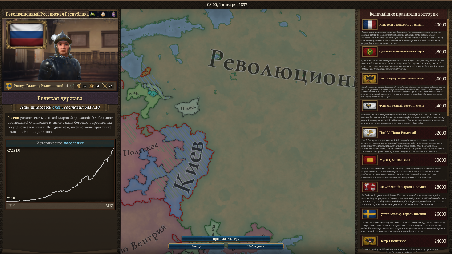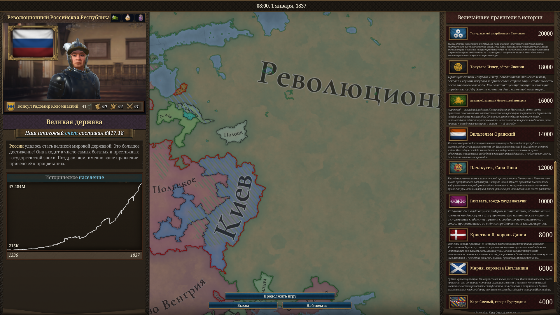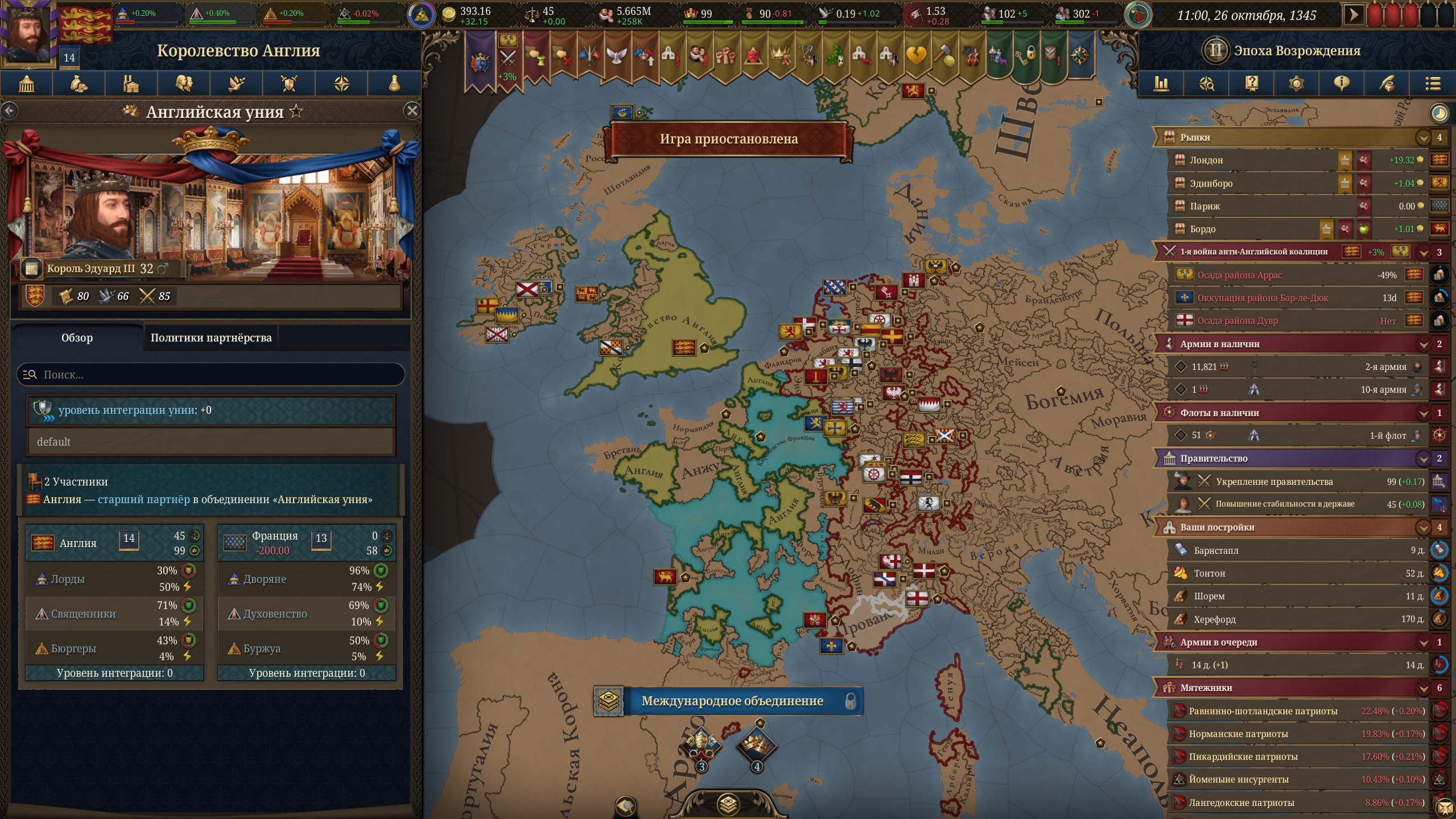 Париж за 3 дня 8 лет Механика подчинения франции душновата, нужно иметь больше очков ВД чем они, чтоб навязать унию Но единственный способ обойти это жрать подсосов франции По итогу меня ненавидит половина европы, а первая коалиция из 1/3 сри в меня уже влетела когда дожимал француза И теперь 12к (потому что островные подсосы нихуя не делают) против 100к, да ещё и усталость продолжает капать