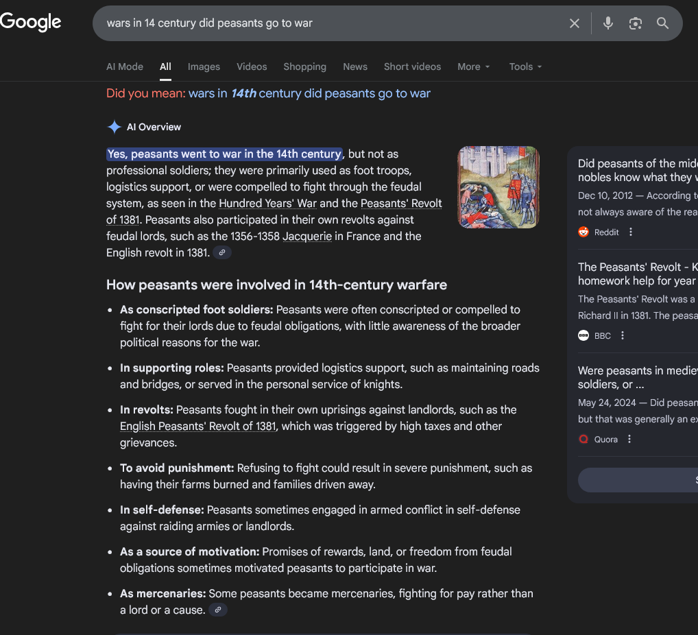 Никакому крестьянину в 14 веке в голову не придёт идти подыхать за барина. Это тебе не 21 век, где с ранних лет с детских садиков и со школ промывают про какую-то нацию, про то что ты должен, про какой-то народ. В этом плане раньше войны были справедливее. Воевал тот кто имел власть, землю, деньги.