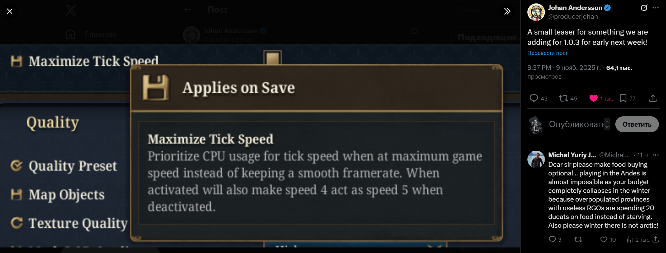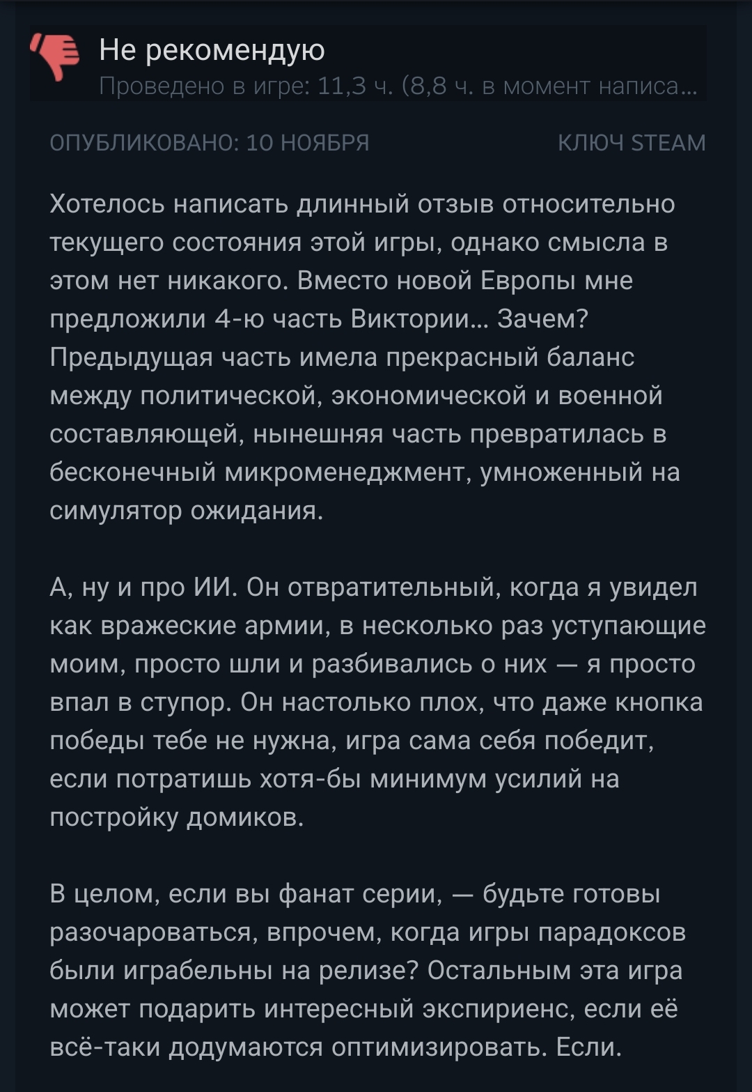 Europa Universalis V вышла, мнения анонов и игроков по всему миру разделились, одни хвалят игру за приличное наполнение контентом, механиками и возможностями уже с релиза, называя игру магнум опусом некоего хитрого шведского деда и итогом всей его 25-летней карьеры геймдизайнера, другие ругают слабую оптимизацию, проблемы с интерфейсом и локализацией, причем на разные языки.