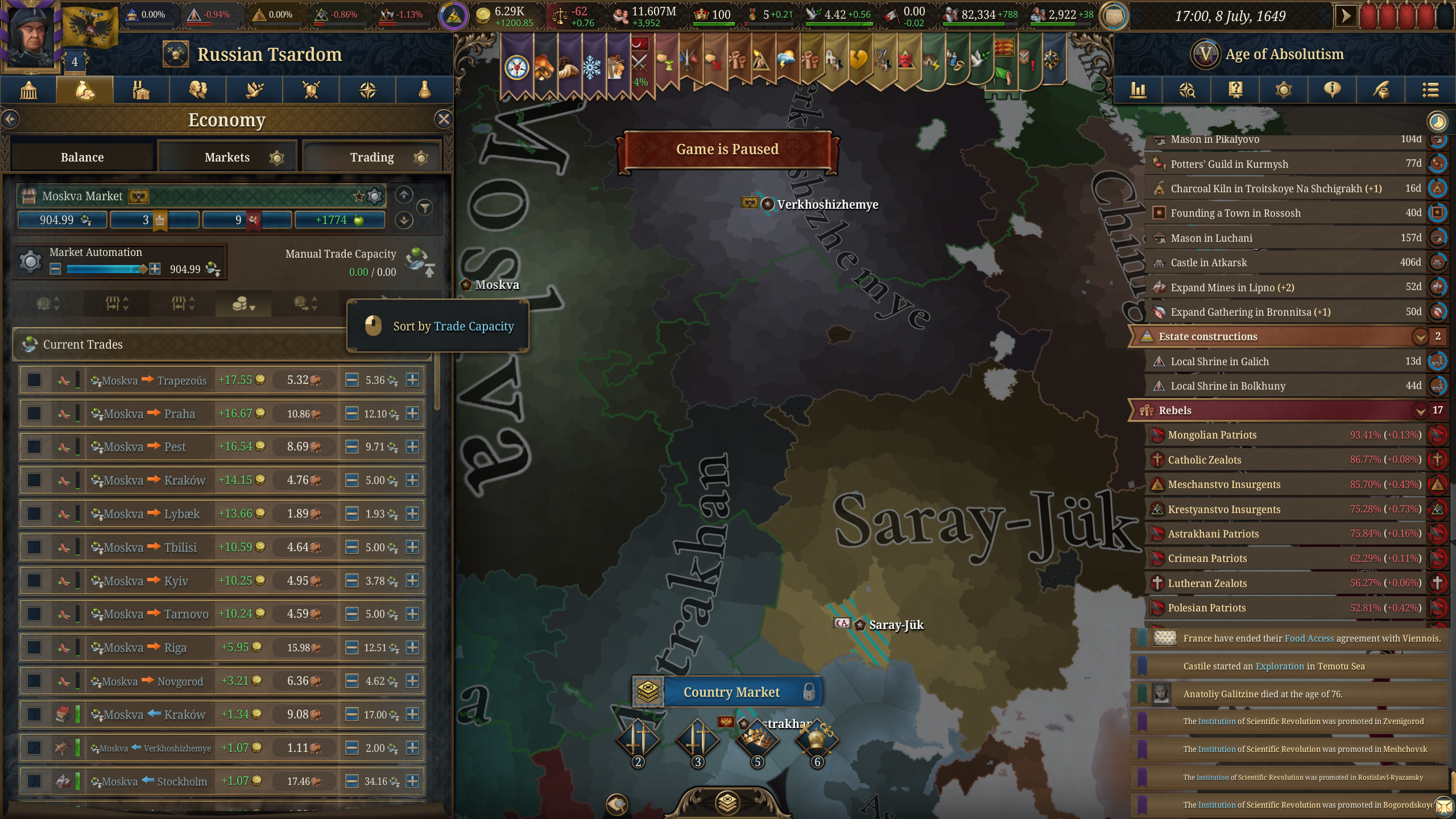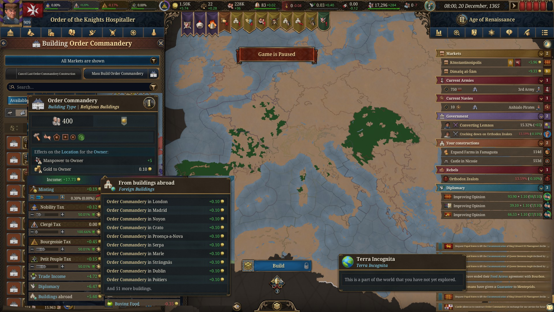 Я не понимаю как вы умудряетесь доигрывать до 17 века, я постоянно паузю, тыкаюсь думаю что построить, еще и игра медленно идет на моем атлончике. За два дня игры до 1380 доиграл