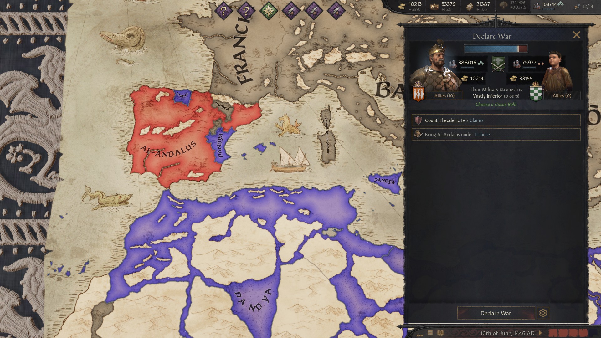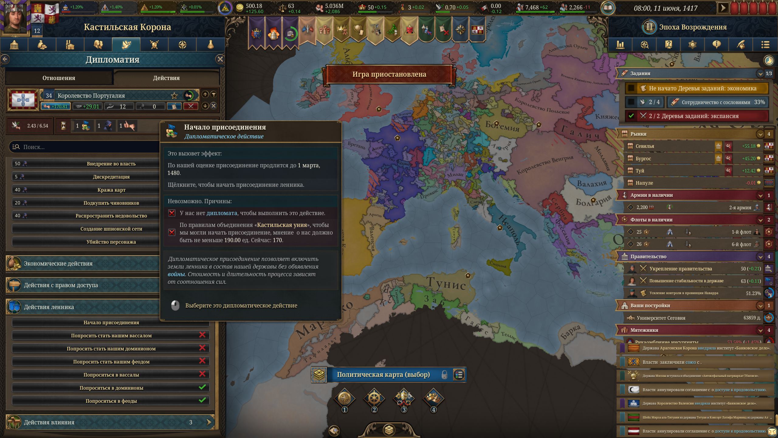 >>50430540 Бля, надо было тебя послушать и вступить в союз с Францией. Я, конечно, не вступил в союз с Англией, но самостоятельно освоил почти всю Иберию, кроме Наварры, а также половину Марокко. И эти пидарасы создали коалицию и напали на меня.