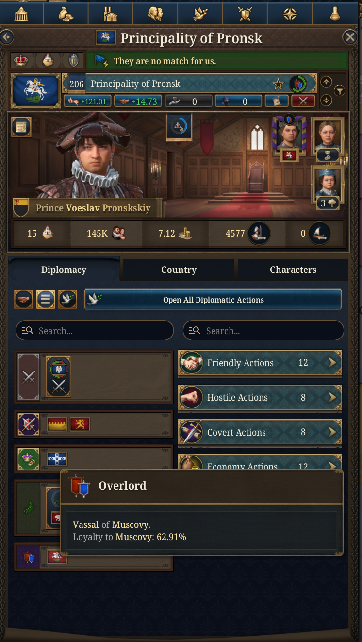 >>50431100 то есть у меня тут глава вражеской коалиции это младшая уния с отношениями 200 и макс интеграцией, но я не могу с ней мирно решить вопросы? че за бред.