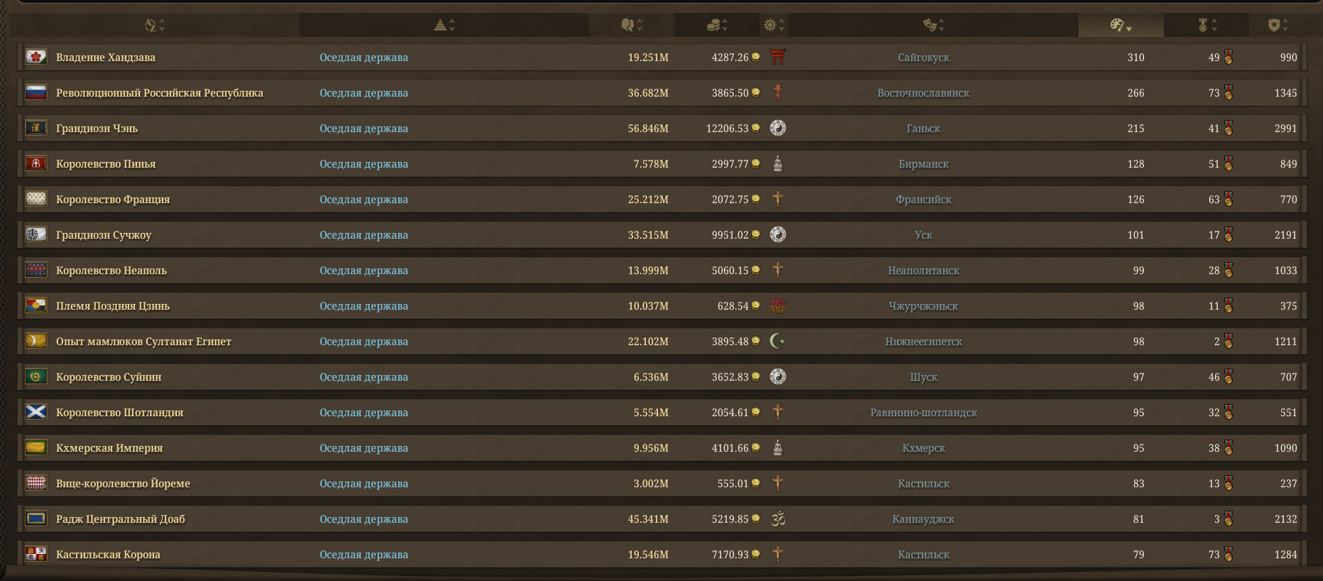 >>50421116 Заходишь сюда, и смотришь требования к рангу королевства. Вроде бы нужно больше ляма населения. Республики у меня не случилось, но вот Сфорца появился.