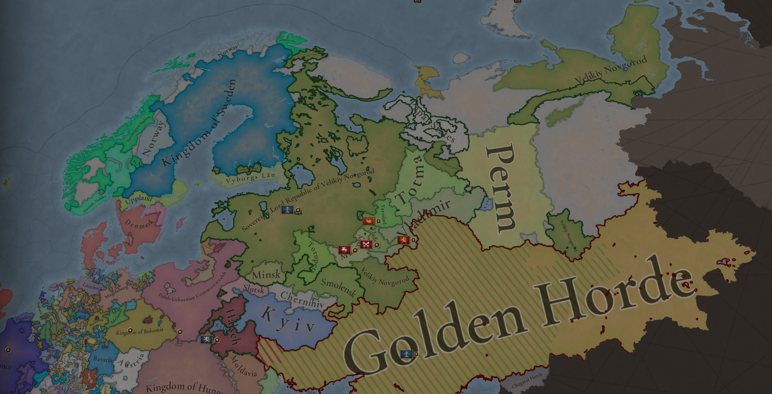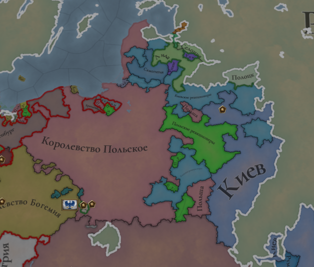 В мире дичь творится. Осман развалился, Польша без выхода к морю как-то отвоевала Акру в святых землях, от орды отвалилась жопа, первый раз вижу, но спасибо. Славяне постоянно падают в унию, даже красить не надо.
