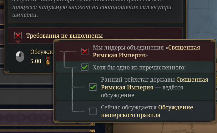 Кто-нибудь разобрался как выйти из СРИ не имея общих границ с императором? Без общих границ кб сформировать не получается, без кб так же в империи нападать нельзя. Хочу с герцогства в королевство перейти, но из-за нахождения в СРИ не дает.