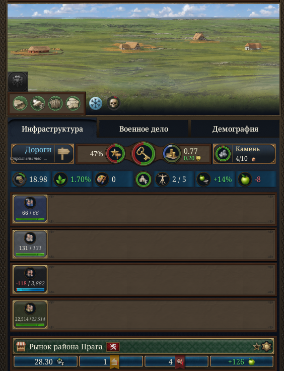 >>50421948 >>50421988 У тебя торговли нет, бюргеров тоже нет. А контроль какой в городах? У тебя вообще города есть? Что по производству и дорогим ресурсам?