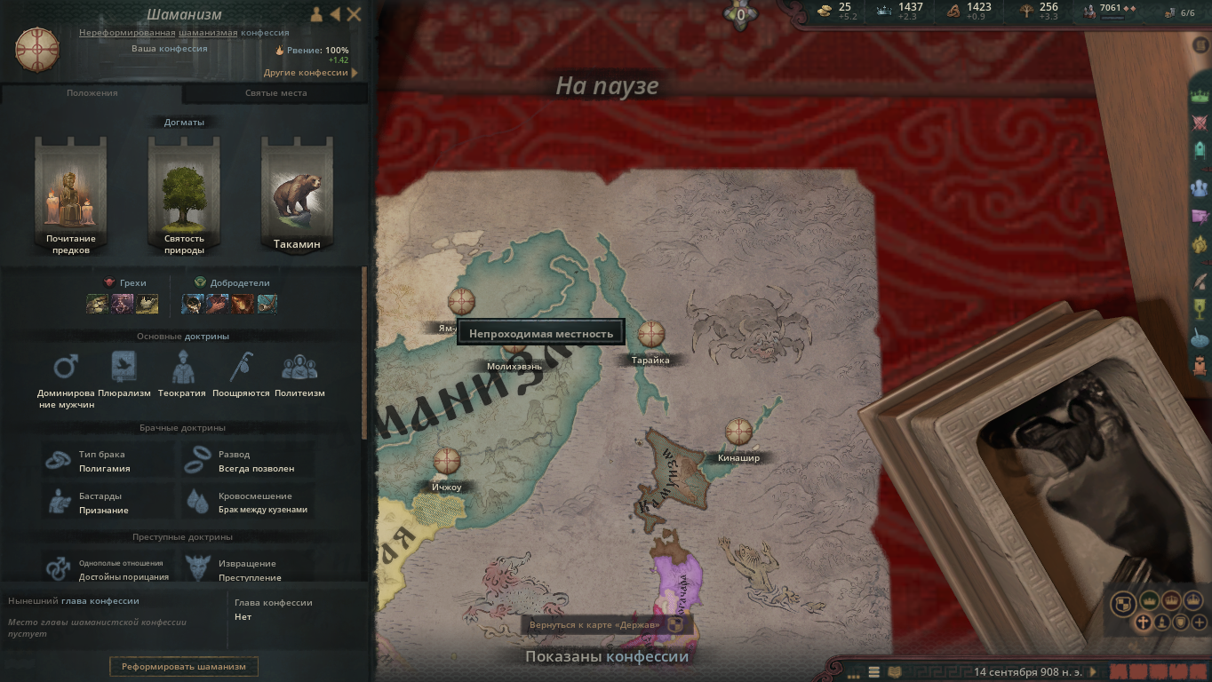 Крч захватил почти все де-юре земли империи, теперь вообще хз че делать. Думаю вкатываться в реформацию шаманизма но я вообще хз что надо менять, религия какая-то всратая, особенно догмат с медведем. Кто нибудь на охоте вообще их видел хоть раз?