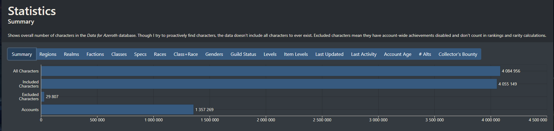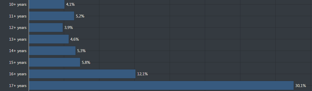 >заявляется 9 миллионов онлаин (выше чем у фортнайтов и контрструков) >30к на твиче в прайм >1.5 миллиона аккаунтов за 2 года >менее 500к активных аккаунтов за неделю (~50к пик онлаин ежедневно) >1.5к тредов на двачах за 8 лет >половина постинга - думпостинг унижающий ворло варкал