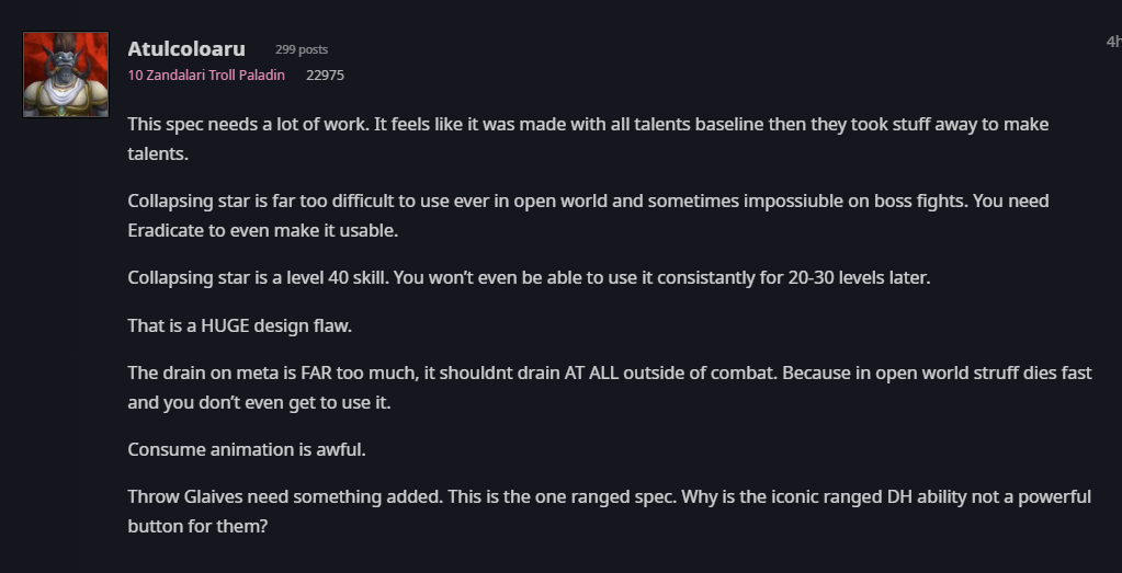 Дополнительно к этому попенворлд в игре превратился в буквально рудимент, удалив который игра не поменяется совсем. Игрок не чувствует себя частью большого, живого калмуните, как это было калсик аддонах, например. Ну и офк анальный дроч на мету, и всякая прочая залупень.
