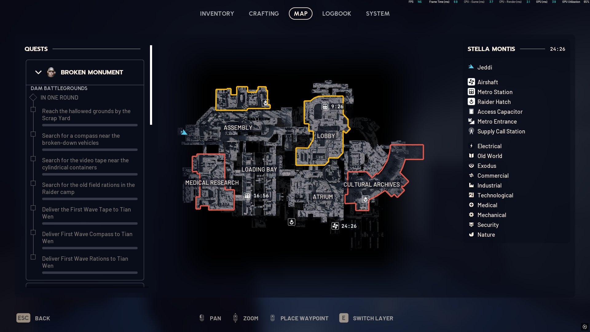 >>50441452 Я сам толком не понял, бегал с толпой. Лампочки должны загораться на терминалах, красная типа не готов, желтая готовится, зеленая - можно собирать. Ищи короче консоли, активируй их, жди когда желтая лампочка сменится на зеленую, собирай. Говорят после этого кд 5 минут на консоли.