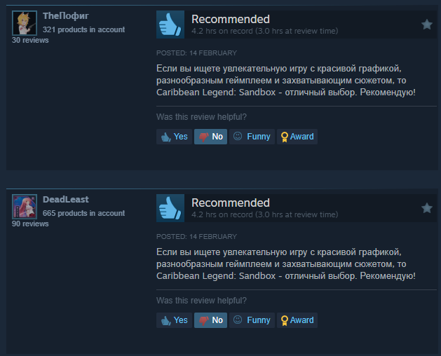 Ну так очевидно, что за такие ЯВНЫЕ И НАКРУЧЕННЫЕ ОТЗЫВЫ Валв должны были нахуй снести КаЛ со Стима, тем более когда пользователи массово на них пожаловались...