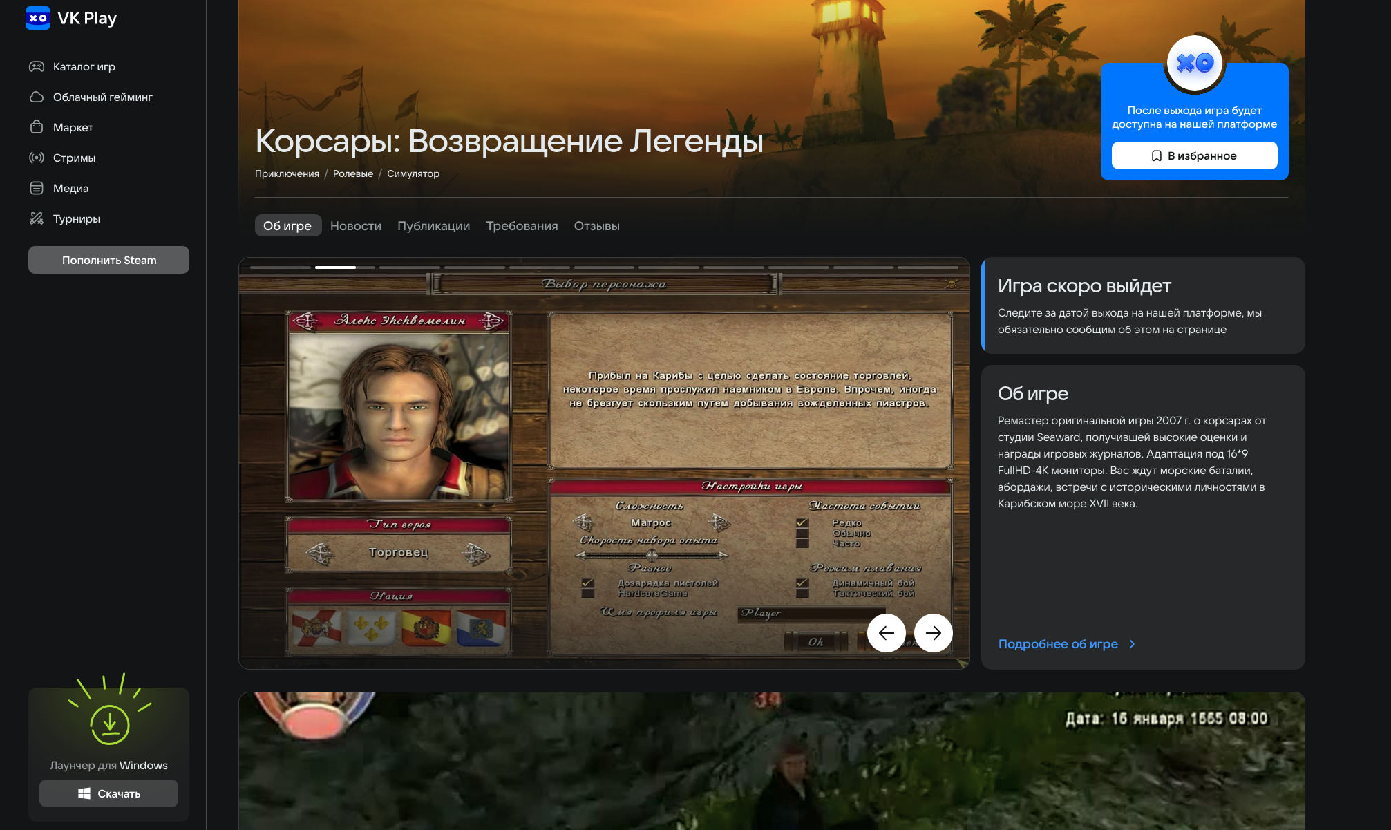 А как Алекс должен "спокойно" конкурировать в международном Стиме, если он де-факто на ПКМ себе пенсию зашибает. Или БМС настолько крутые, что и Дисней через хер кинуть могут? А в ВКПлее у него форменная монополия на Корсары.