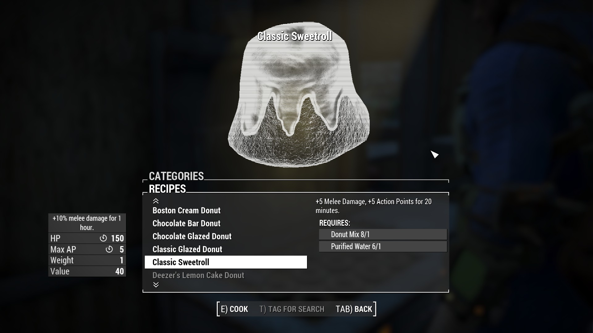 >>50443856 Бля, система рецептов хуета какая-то. Готовить условное "Карэ барашка" из 14 кусков мяса Шипскотча, которого разваливать полчаса ещё и хуй найдешь его; чтобы получить бафф в виде повышенного крита в VATS на 20 минут (или что там я не помню точно) - такое себе.