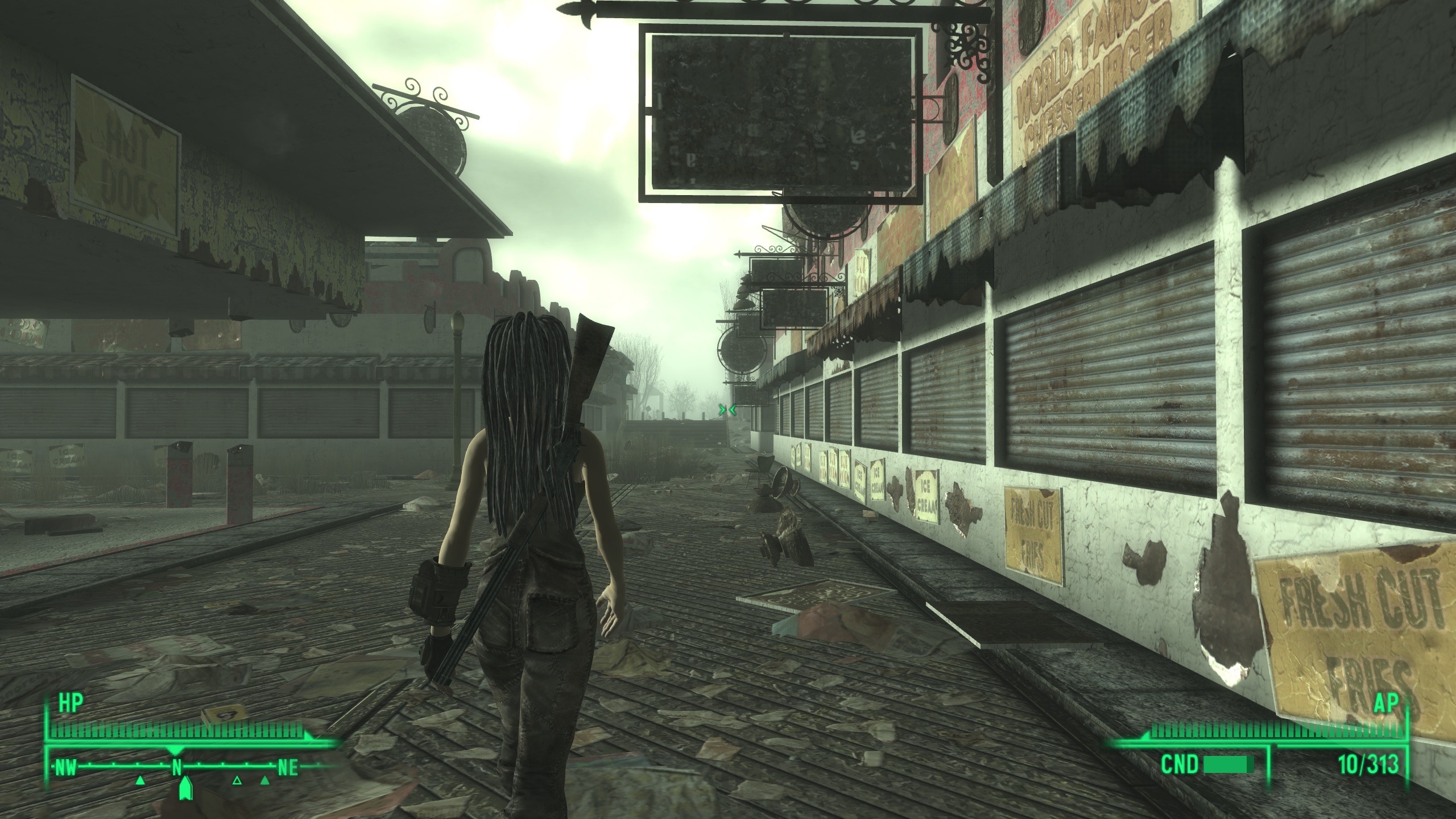 Во-вторых, тоддлер почему-то любит мыло. Возможно вытираны фаллаутов привыкли или им не заметно, но когда вы заходите в игру, первое, что вам бросается в глаза, это отсутствие резкости в картинке. Ёбаное мыло и яркие аляповатые цвета. В стартовой локации-убежище это ещё ладно, но вот когда выходишь... мамма мия, Тодд, ты охуел? Сначала я потыкался по советам в сети и изменял ini-файл крутя настройки туда-сюда, получилось плохо. Вся проблема в сглаживании, по умолчанию это ТАА и если его отключить или изменить, то будет кошмар с лесенками и пикселями. Опять же, помогло шаровое видео с ютуба от некоего Бородули, спасибо ему. Всё понятно и просто объяснено, сделал как у него и Фаллаут внезапно стал похож на игру, в которую можно играть. Особо отмечу решейд, простейшее изменение в изображении даёт картинку без мыла и без каких-либо проблем с производительностью. Как-будто рендер игры подняли с 720 до 1080, охуеть. Вы посмотрите на скрины было - стало.