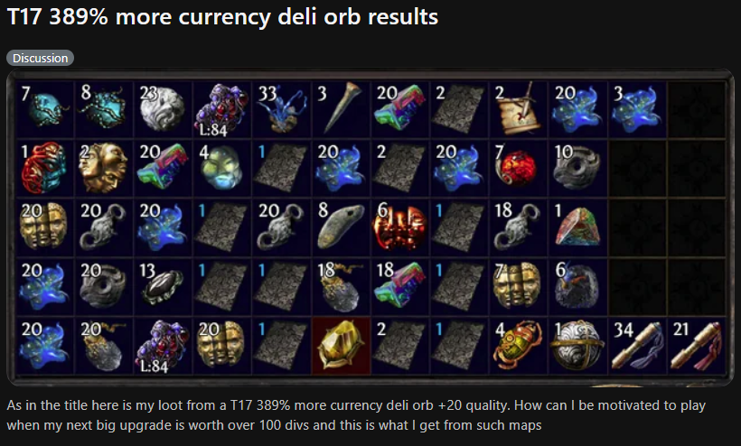 да действительно зачем лут вот две лиги назад восьмимодкофармеры могли по нескольку раз порталиться назад чтоб мапки выкладывать а теперь 5 штук залутал и кайфуешь зато удобно