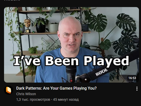 Видео «Dark Patterns: Are Your Games Playing You?» от Chris Wilson посвящено скрытым манипулятивным механикам в современных видеоиграх.