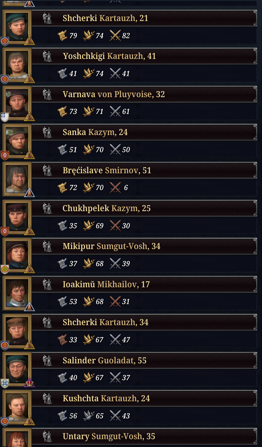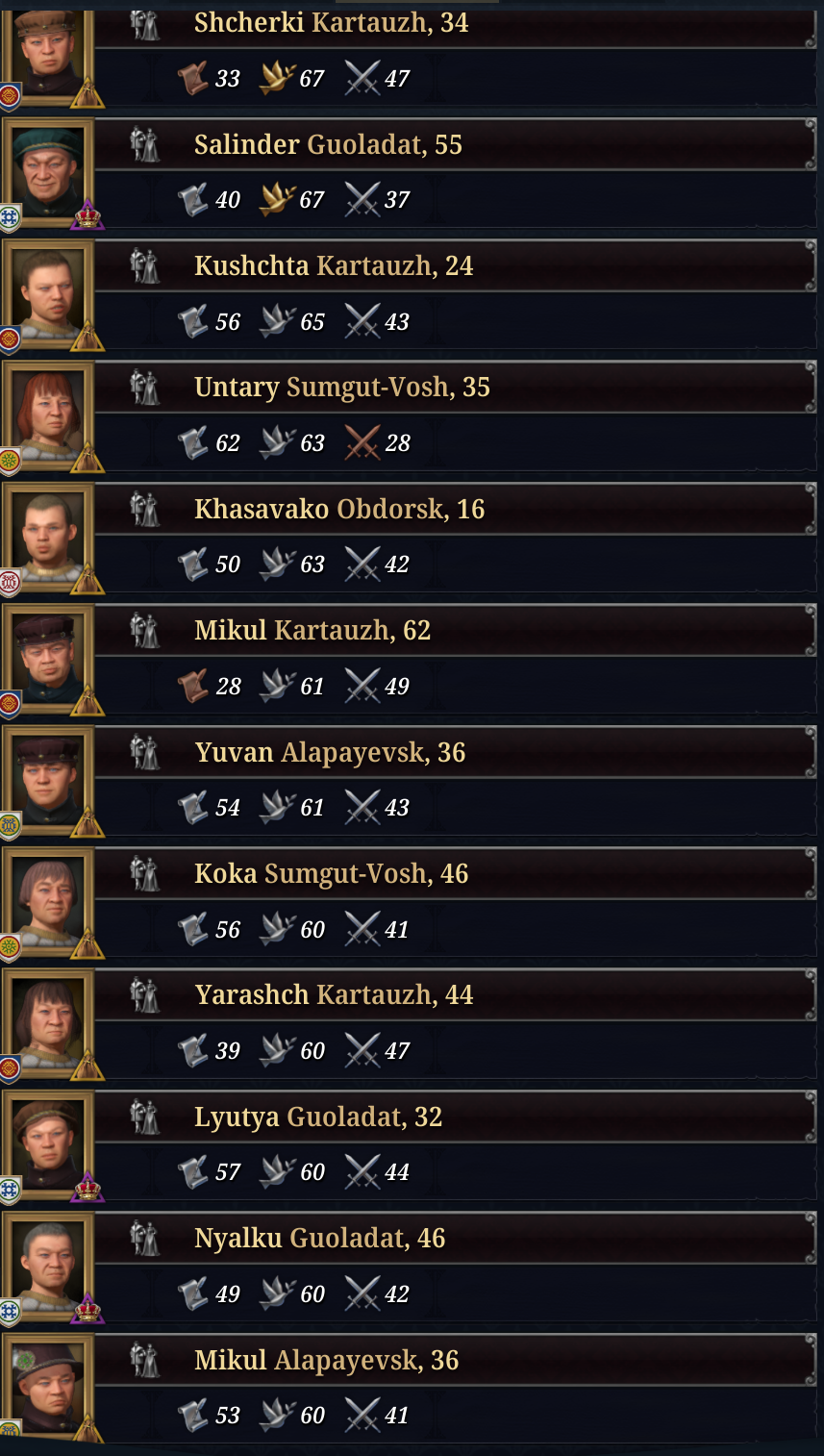 >>50454016 У меня есть дин браки и ноблы, но ощущение, что от них дети идут куда-то не в мой двор, потому что у меня при дворе только или прямые дети, или родные братья.