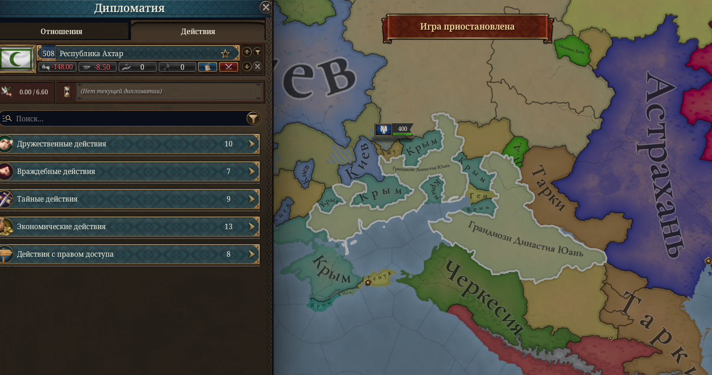 Надеюсь поправят пассивность ии. Сосман не сожрал византию. Былл войн 5 или 6 между ордой и тимуридами, но они заканчиваются ничем кроме самой первой, когда орда потеряла земли на востоке. В остальном всё как-то тихо-грустно. Надеюсь дальше разгонится.