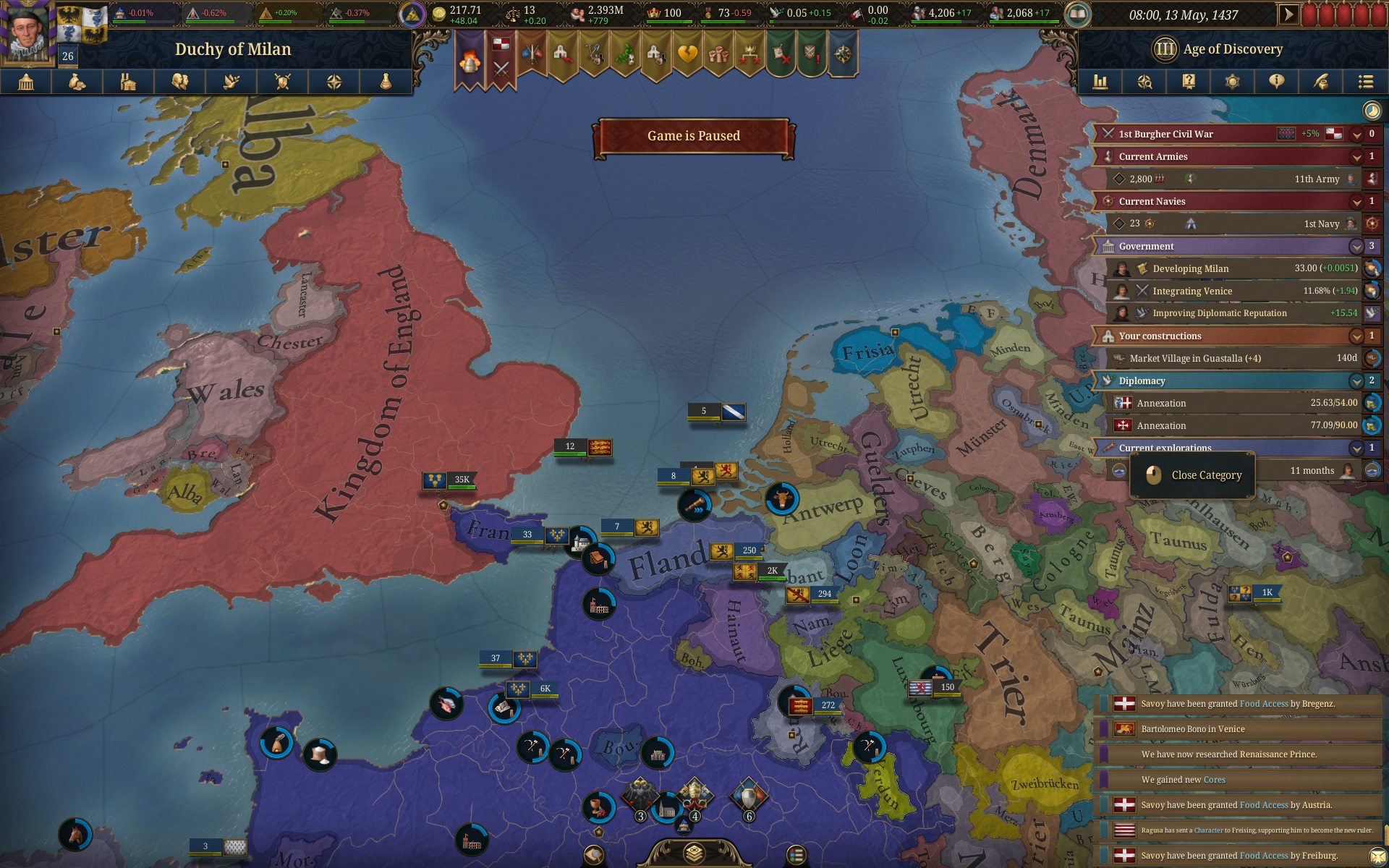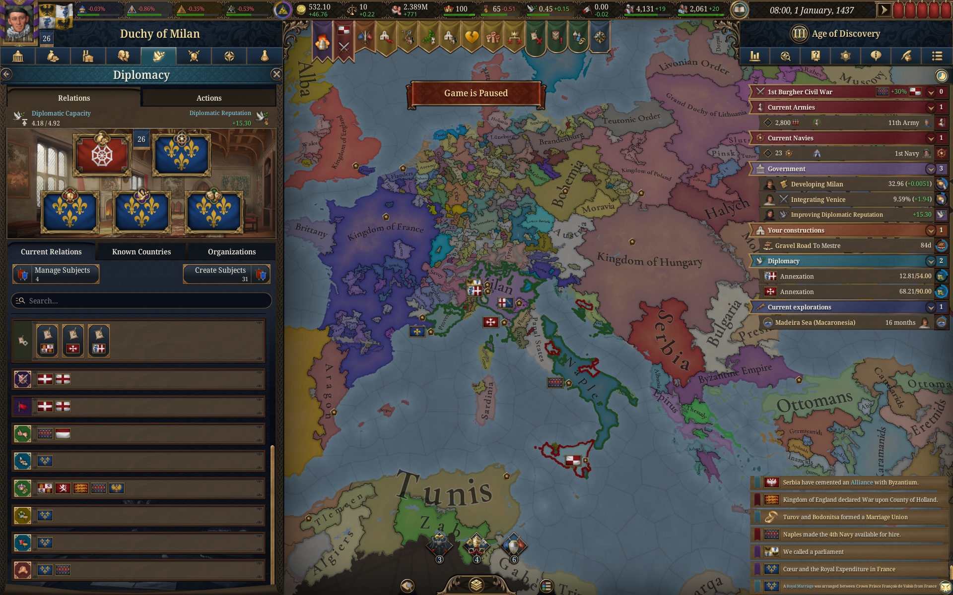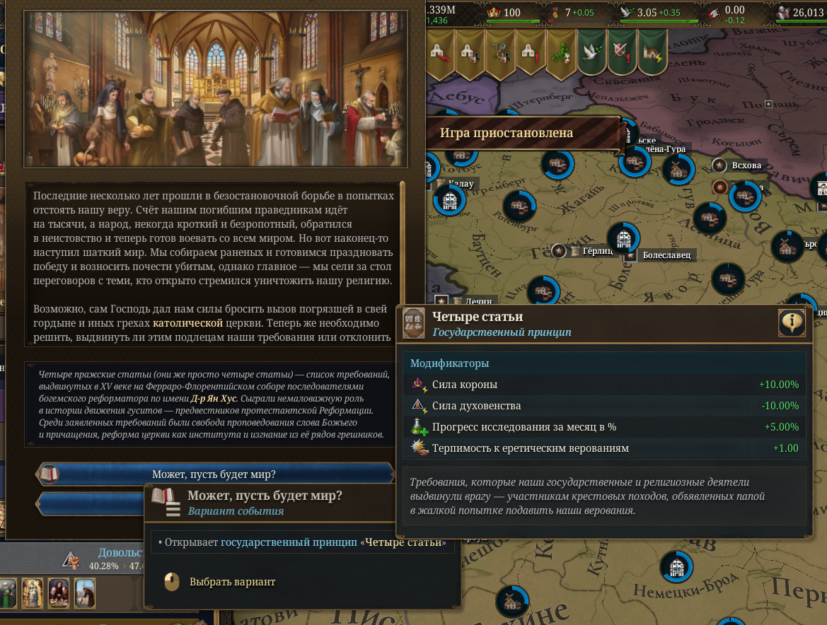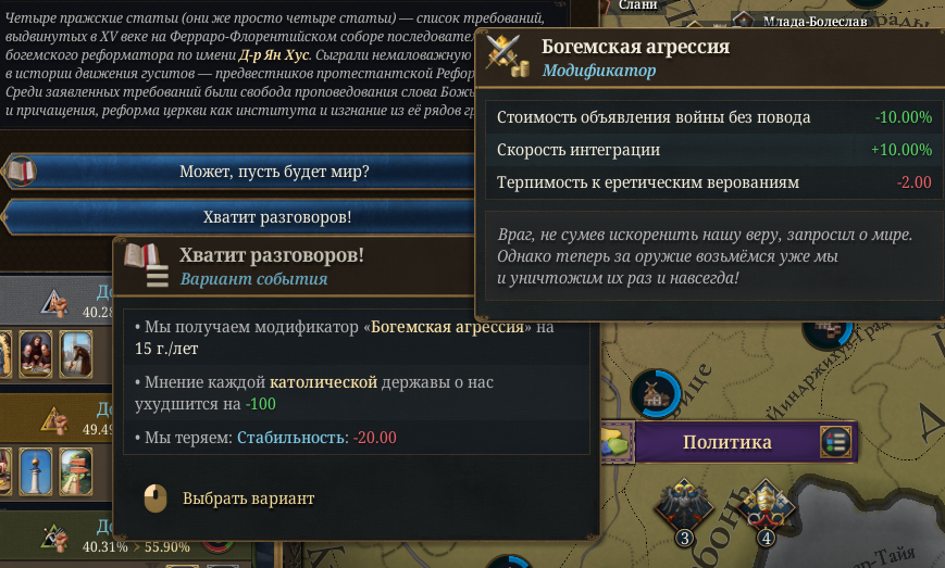 Че круто в пятерке по сравнению с четверкой это вот эти глобальные события типа столетней войны или гуситских войн. Уникальные кнопочки дают, ивентики, арты в ивентах - кайф