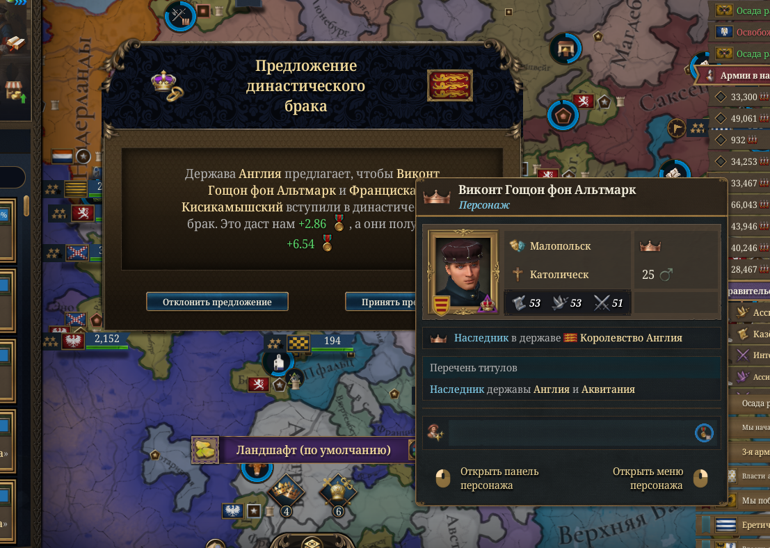 >>50432759 У меня наоборот все голосуют за правильные законы. Еще киев, галич и болгары упали в унию, но их смысла интегрировать нет, 100к войск на дороге не валяются. А еще когда смутное время начнется или бояре восстанут, челы сами за тебя все провы займут, кроме крепостей.