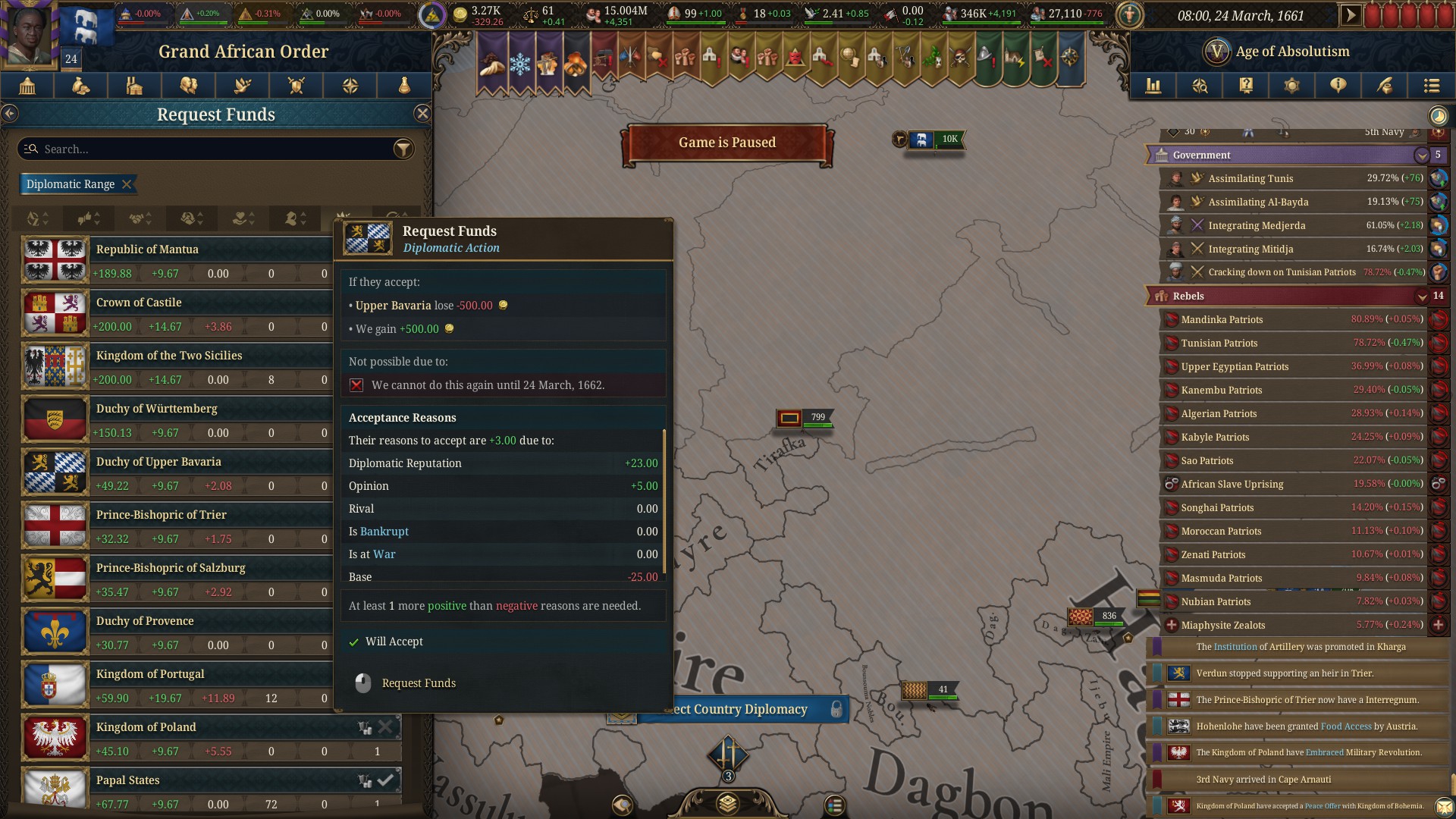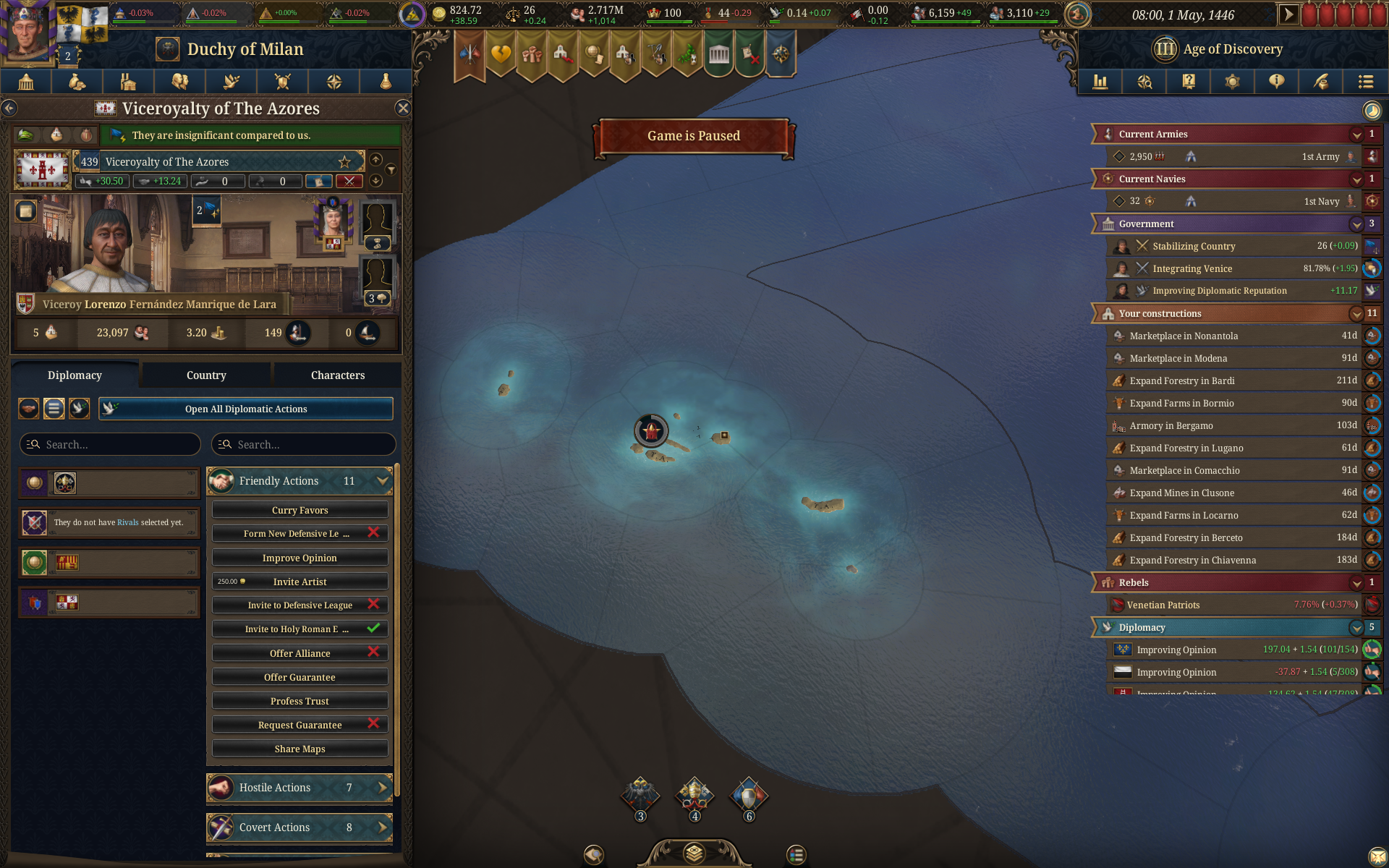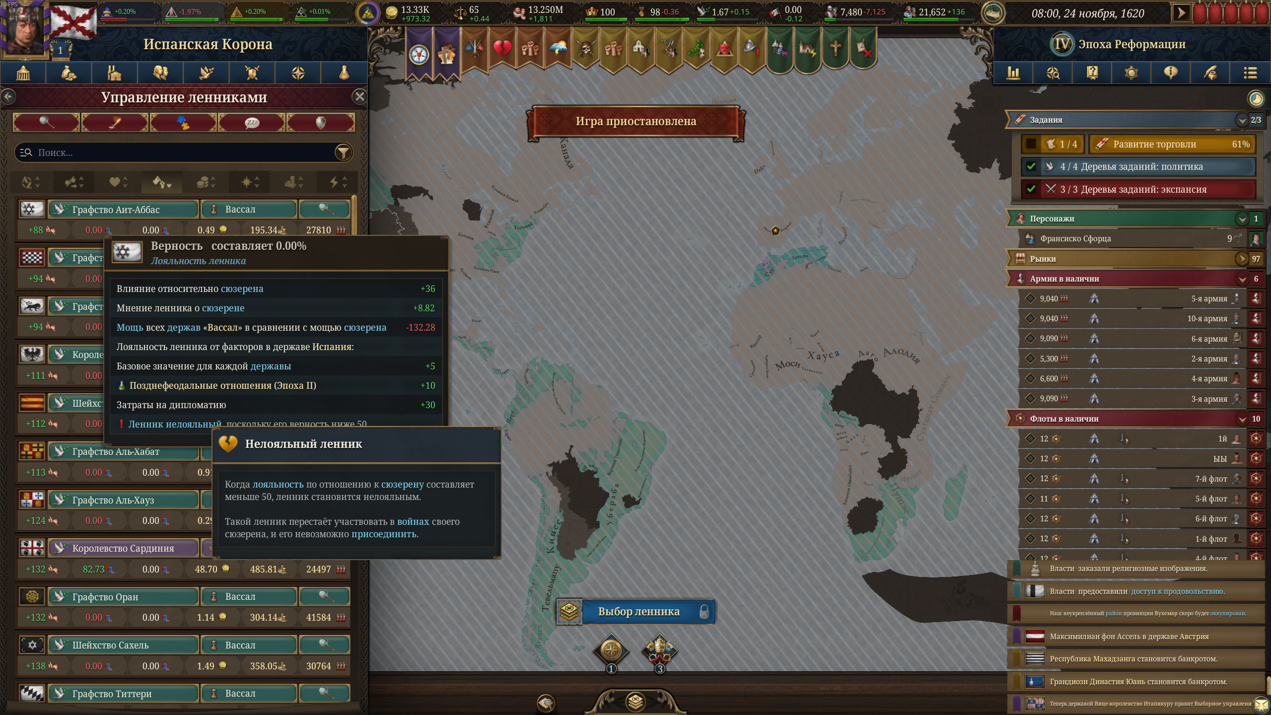 Как называется эта болезнь? Что может побудить ИИ заниматься такой хуйнёй? лишь 1/7 часть менпауэра бота на Франции в 1480 году используется, при том что на это уходит четверть экономики. Так же приложил Поляка, там всё нормально раскидано и он утопает в золоте.