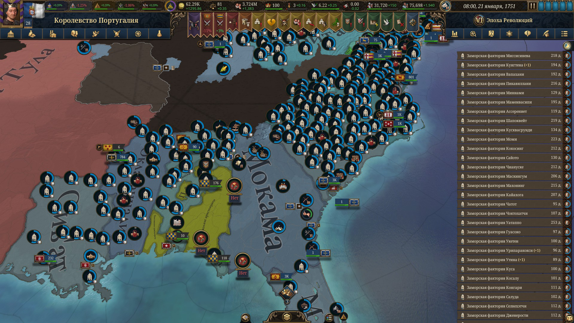 >>50451036 Я как вообще колонизировать за небольшие страны вроде той же Португалии? Населения не так много. Я так понимаю, нужно как-то выкачивать рабов из Африки?