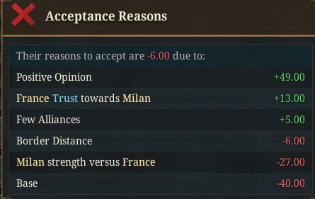 >>50450433 >>50450428 И еще важны правила, особенно правила дающие бонусы лояльности для аристократии и простолюдин. Простолюдины главный источник дохода, в сословных правилах надо дать приоритет им. Аристократы самое опасное сословие, но еще и второе по доходности после простолюдин, им тоже в идеале выдать правила типа горных прав или необразованных масс. Правила меняются во время парламентского собрания, руками за стабу правила не меняются - безумно дорого.