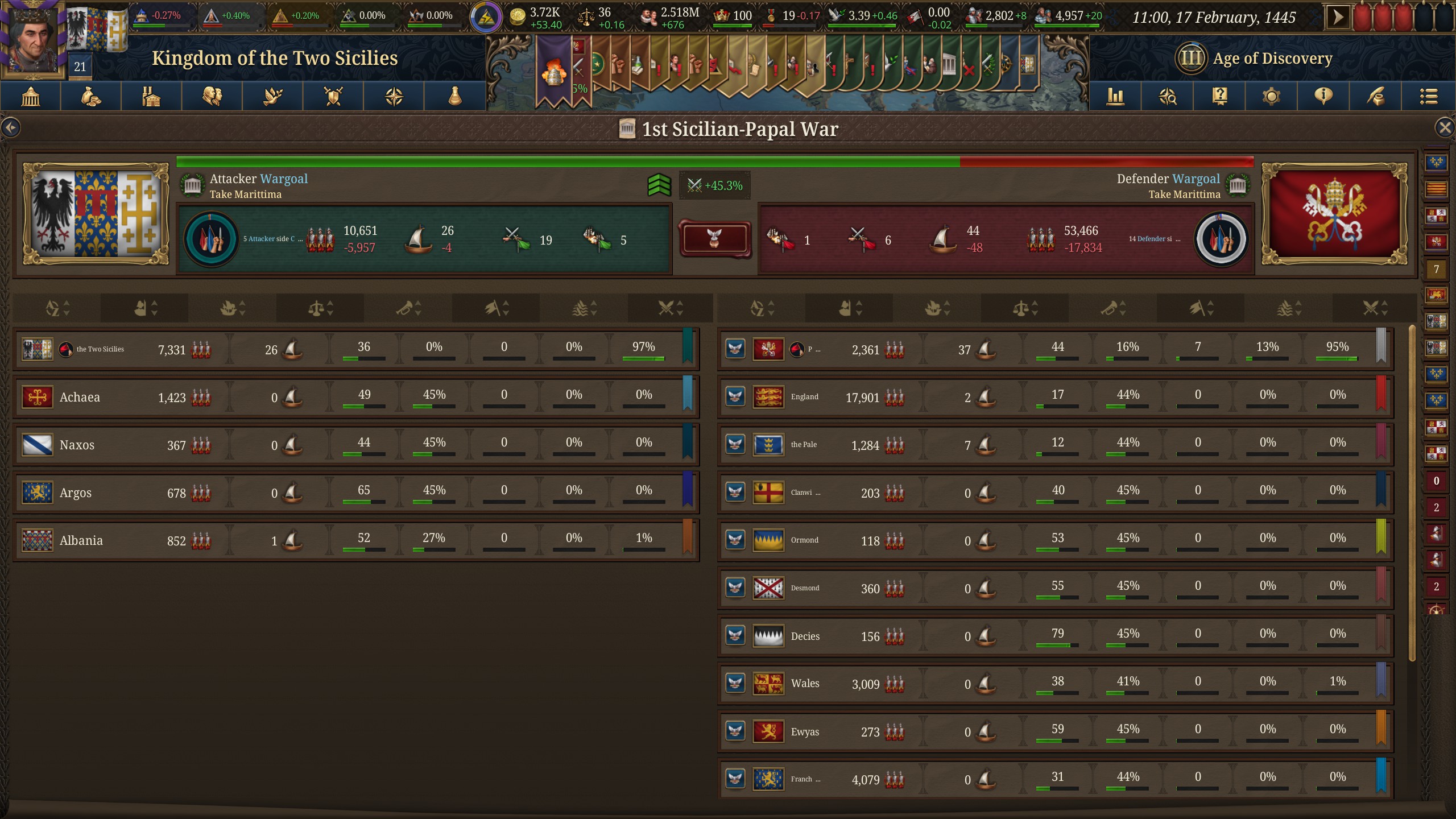 Ну и почему это говно способно мобилизовать в 2 раза больше населения чем я, при том что у них общее население меньше в 3 раза и контроля нихуя нет? Жаль что в окне войны не пишутся потери от истощения, я там армию 10к на острове запер. А ещё Шотландские армии какого то хуя вообще не вайпались, я за другой 10к армией гонялся год, раз 20 их разъебал но они теряли по чуть чуть.