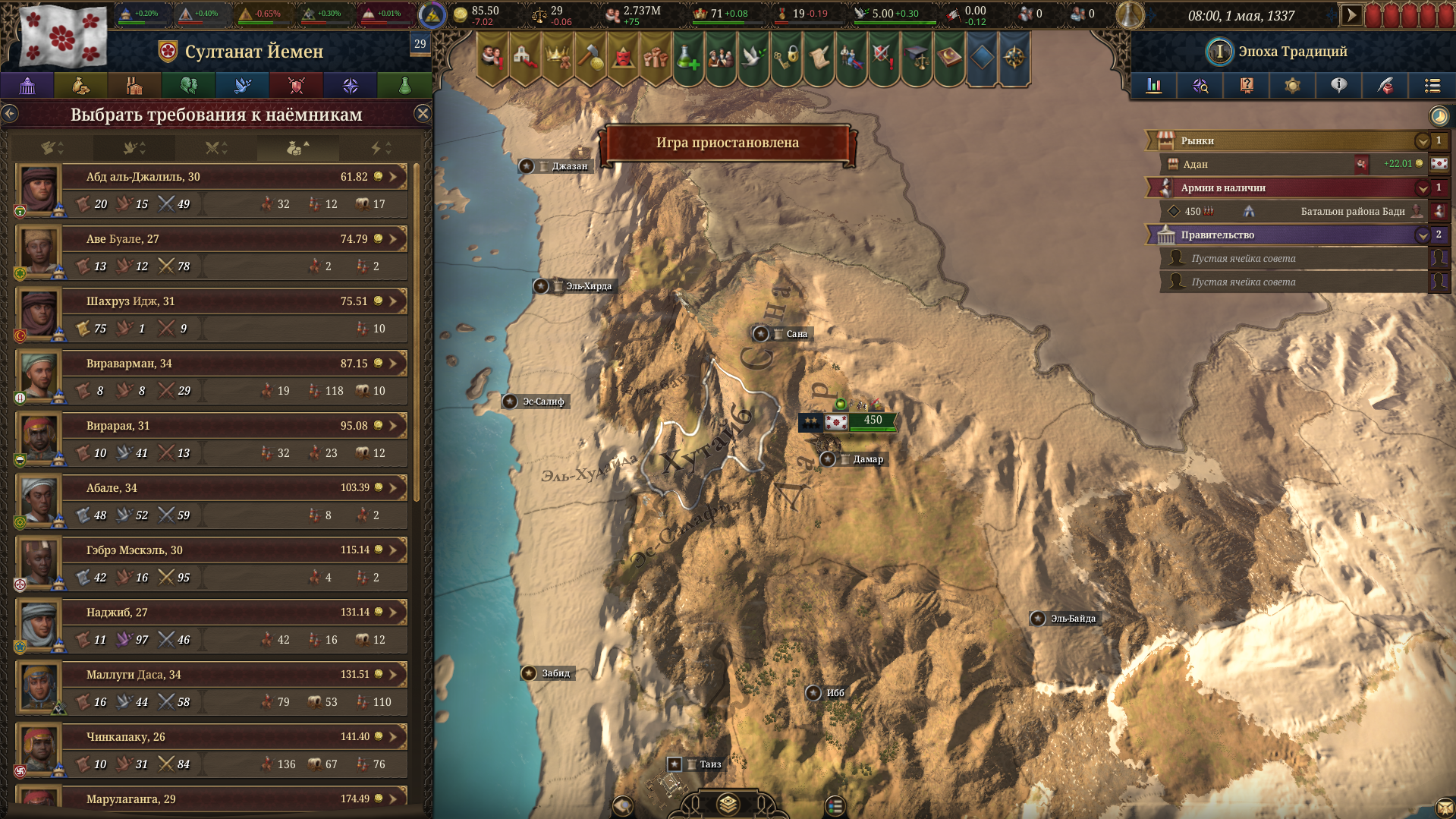 Теперь что касается наёмников, я всё ещё считаю, что это мне Йохан насрал в штаны и ввёл в заблуждение. Посмотрите на это окошко 0 0 0, сравните с соседними. Мне показалось, что хуй мне а не наёмники...