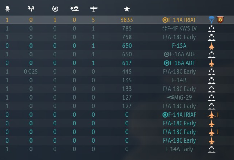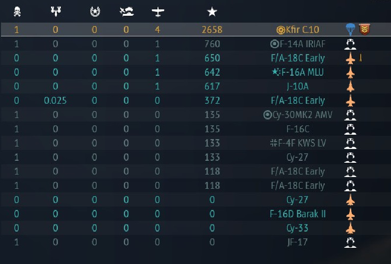 Вот например, чисто 1 бой. Ебнул 15Е, попутно уклоняясь от ракет 30СМ, он блять сбивает мою Пл-12 своей Р-77-1, но не вывозит в клоз комбате. В итоге в 1 размотал двоих. Если сбитие Ф-15Е можно считать достижением, кек, >>50493279 Хуже амнямов в игре ракет нет.