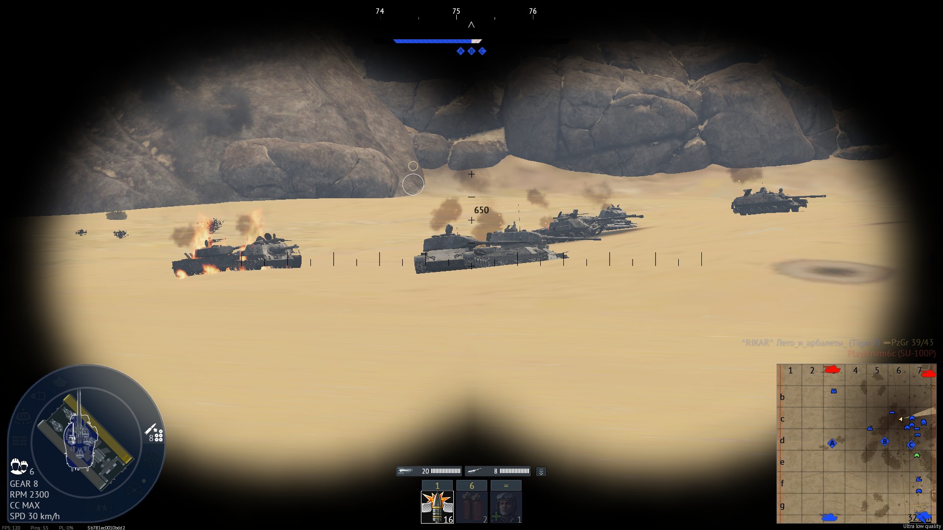 >>50453388 > Пушка- хуета, как блядь можно выдать впопудание кт в борт с 200 метров? Это абоба. Оно же "механика объёмных боеприпасов". Чем больше снаряд - тем больше эффект. Снаряд может зацепиться ребром за какой-то элемент брони и разрушиться, ты получишь "попадание". Старайся не стрелять во всякие стыки брони. И держи в уме, что оно работает в обе стороны: тебя наверняка тоже часто не пробивают тогда, когда должны были пробить 200%. На Т-34-85 (и вообще всех 34ках) это особенно хорошо заметно, но ИС-2 тоже так умеет. > Тяжи других наций вообще непробиваемые в лобовую проекцию. Неправда. Тигра2 ты в щеки башни пробиваешь уверенно. Т29 в НЛД но не по центру, то есть стрелять надо в НЛД где-то недалеко от гусениц. А больше как бы никаких сложных тяжелых танков на ИС-2 ты встречать не будешь. Всё остальное ты ебешь в силуэт. Проблемы бывают только со всякими картонками, которые слишком тонкие, что бы твой снаряд взвелся - через такие снаряд пролетает на вылет без урона. Если такое произошло - используй пулемет, он тебе не для красоты дан.