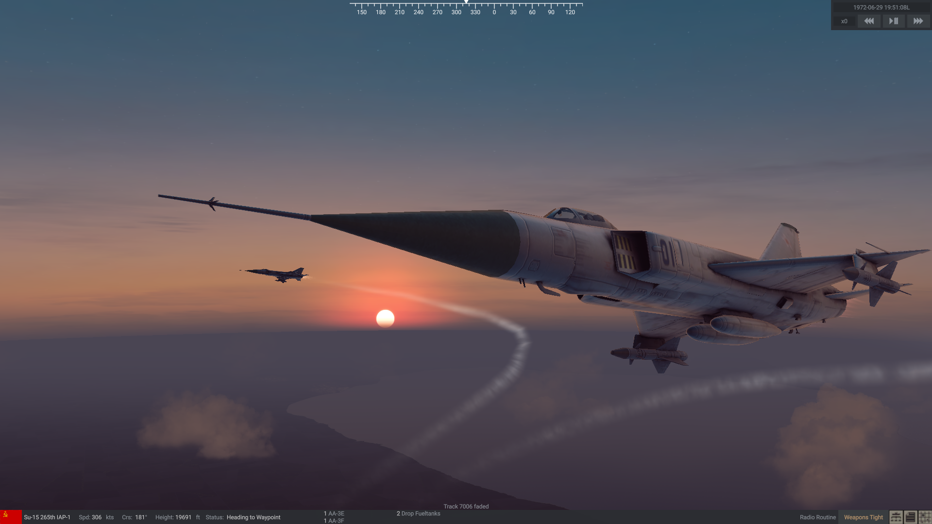 Походу пофиксили промахи АРЛов при раскидке с больших углов. 3 из 3 по целям в антиподе вертикально сверху залетело. В сочетании с увеличением высоты инверсионного следа это очень сильно попустит антиподных додстеров.