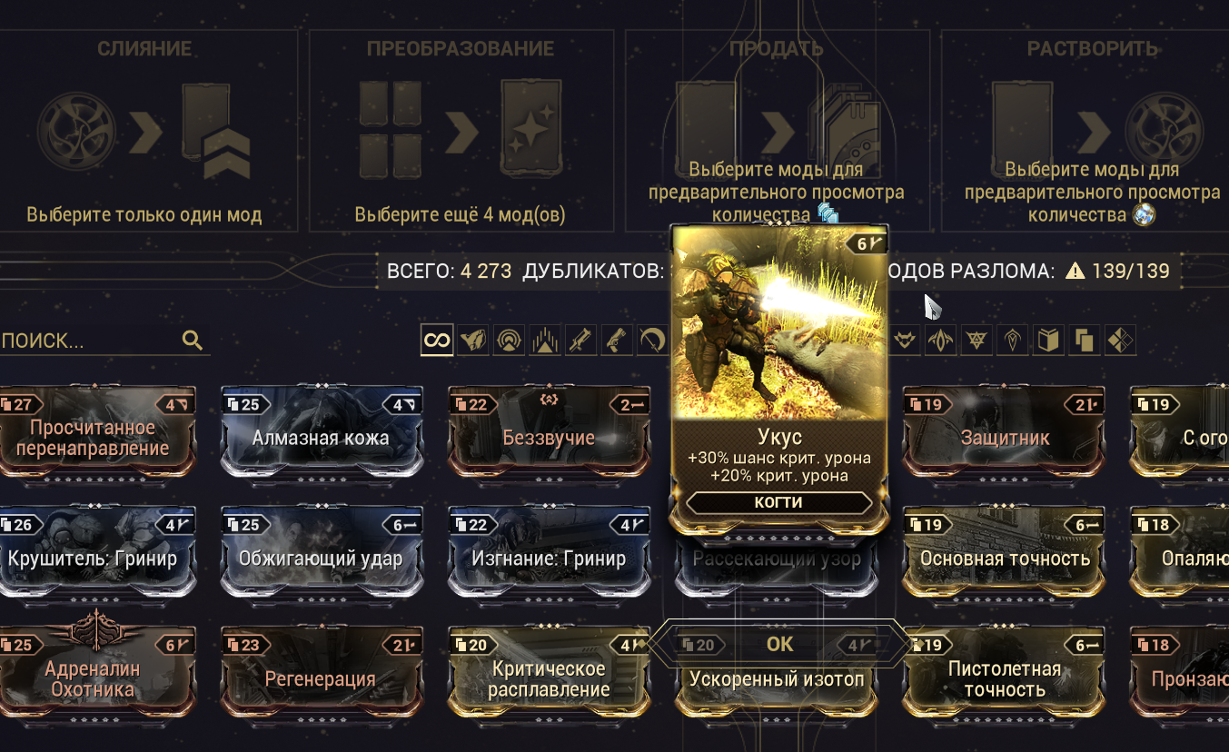 >>50556151 Ну вот на цитринке, крит урон (без крит шанса ибо не нужен, опять же, цитринкины кристаллы дают плоскую не скейлящуюся от модов прибавку) это охуенчик. В остальных, пожалуйста, мультика побольше, дамаги и прочего кала вроде скорострельности-стихиек.