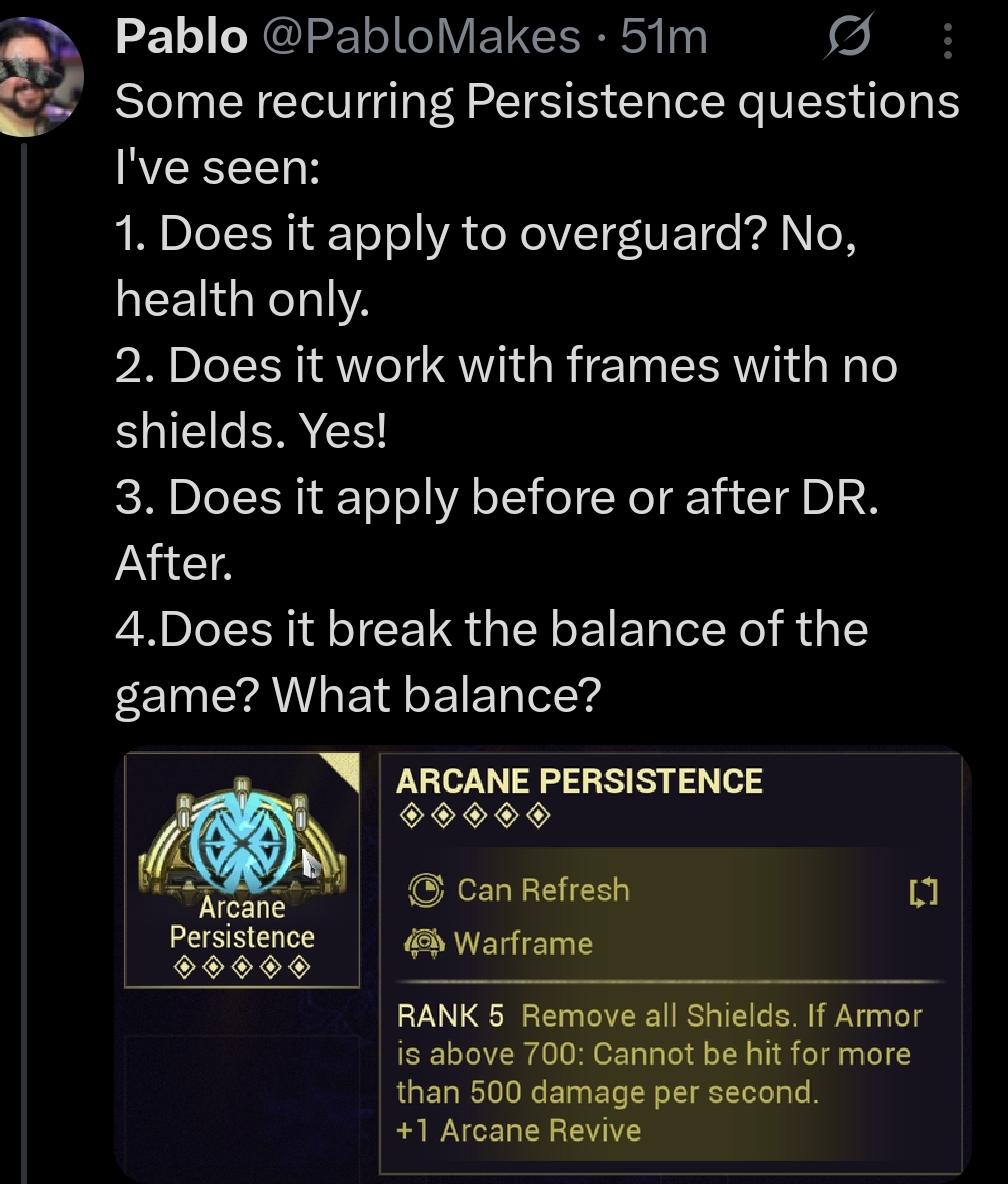 4. "100% от модов силы способностей применяется ко щитам" - +300-500% щитов звучит весело, но на практике - слишком большие щиты мало кому нужны кроме хильдринки. 5. "Отключаем щиты, если брони >700 то вам в ебальник максимум влетает 500 дамаги/сек" - хелс танкинг девяток с хирудой кодой в ручках хохоча и улюлюкая и танча ебальником вообще всё. 6. "Перекат через противника пиздит 50% их (сверх)защиты" - в зависимости от того, какие защитные показатели пиздятся. У сверхзащиты вроде был кап в 15к ед. Выглядит маловато.