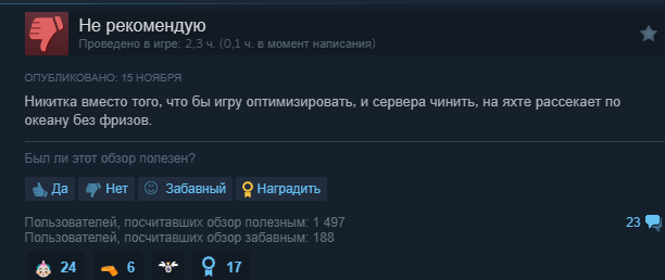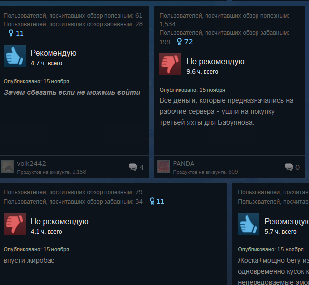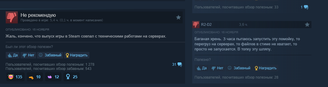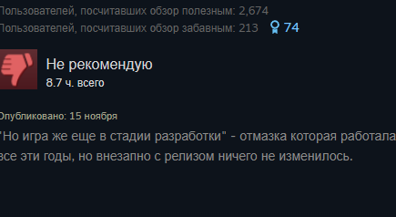 Как же буба ебет стим пиздец. >2 часа ждешь на релизе и не можешь рефанднуть >отзывы засраны невозможностью зайти в игру, так что твой негативный отзыв никто не увидит и ни на что не повлияет >если взял в стиме чисто ради негативного отзыва, твой акк забанят и в лаунчере
