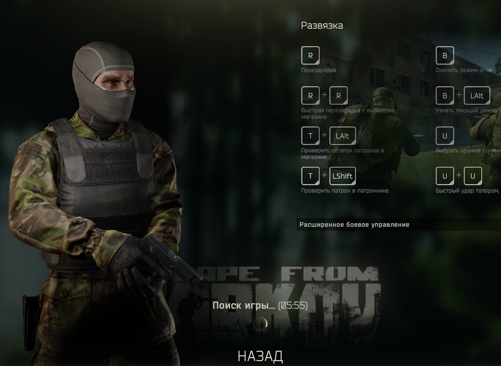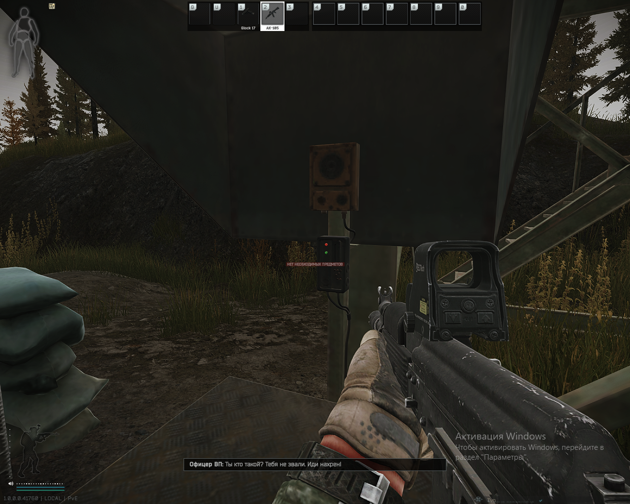 Вот, я об этом говорю. Схуяли я "выбрался с эпицентра"? С какого эпицентра? Когда я выбрался? Я ничего не делал. Это тот самый обучающий уровень? Как туда вернуться? Если нажать "сбежать из таркова", то ты спавнишься вообще в другом месте, у тебя нет пистолета, только какой-то нож и всё. Это не то. И почему у меня здоровье такое хуёвое? Подскажите как это откатить?