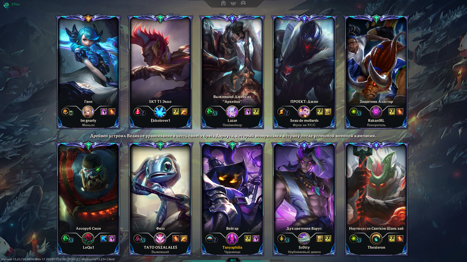Дополнительно, погромисты райот геймс до такой степени не верят в твои когнитивные способности, как игрока в лигу легенд, что окно игры будет несколько раз самостоятельно разворачиваться на передний план и неважно, чем ты там занимался: пароли вводил или деньги пересылал. Ведь, по мнению сотрудников райот геймз, у тебя памяти меньше, чем у золотой рыбки, и ты можешь забыть, что зарустил лигу легенд, если свернул ее на 10 секунд.