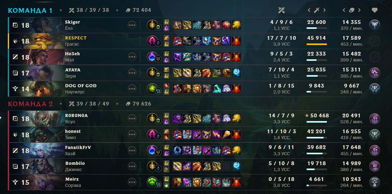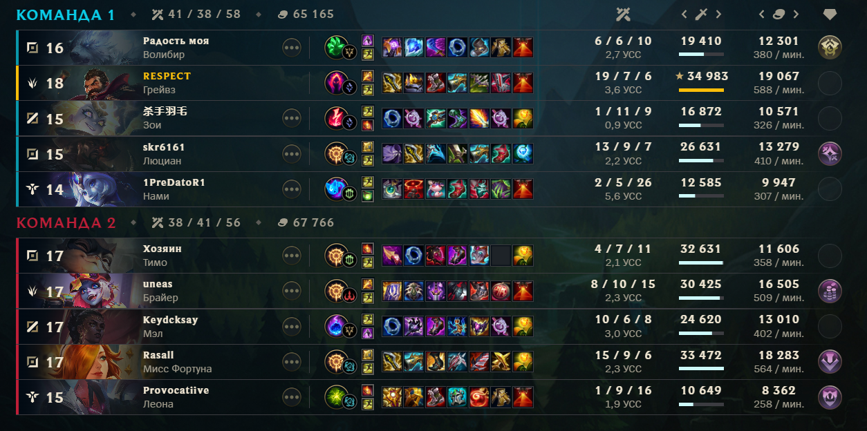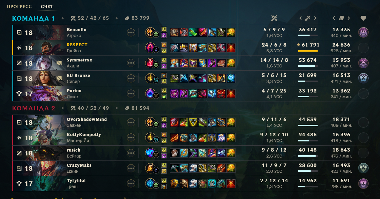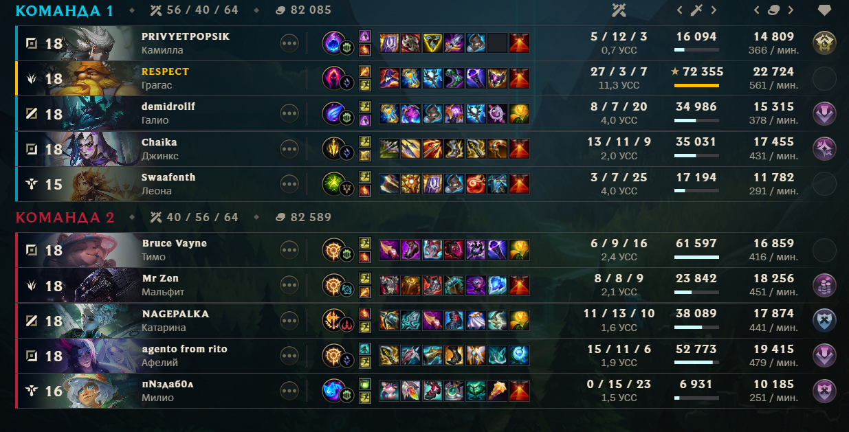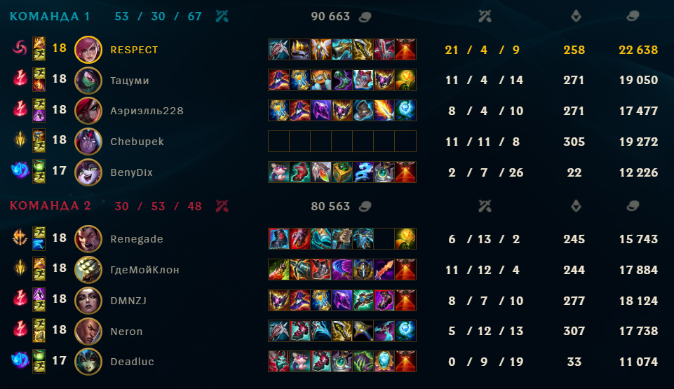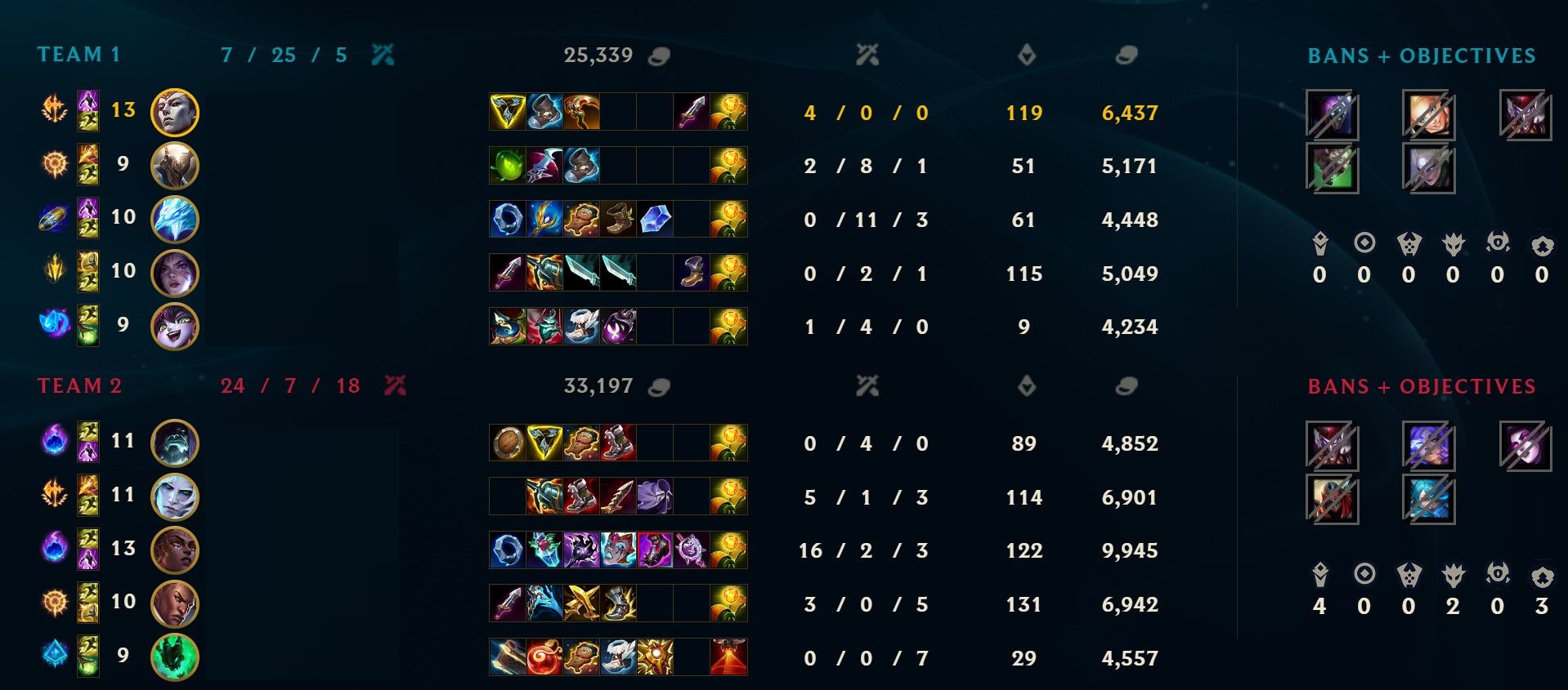 Абсолютно балансный рито матчмейкинг. До последней секунды было неясно, кто победит. Все бились, как львы и зубами выгрызали победу. Интрига сохранялась до последнего момента. Ну, а то, что 0 обьектов, и счет по убийствам в 4 раза разнится - так это случайно. Ведь все в рамках баланса. Силы были абсолютно равны. Никто не фидил и ни одна линия не была гапнута. За это лигу и любим.