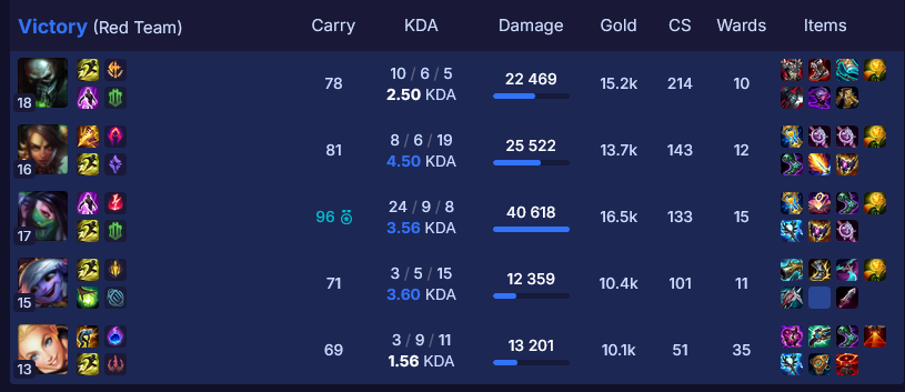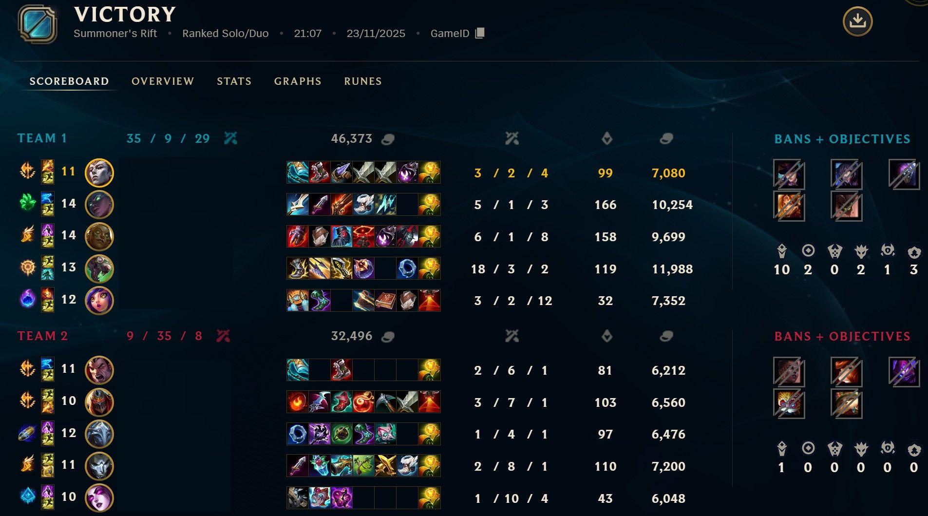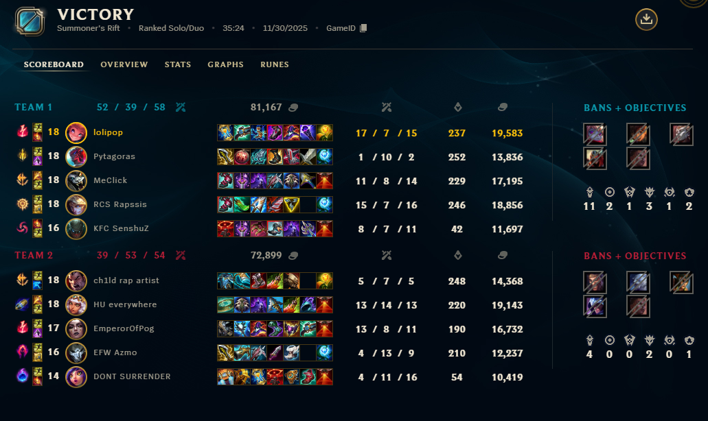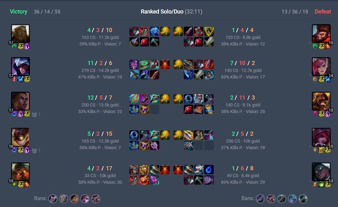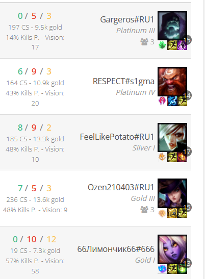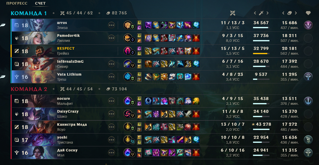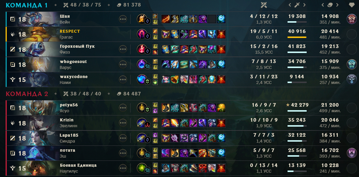 Абсолютно балансный рито матчмейкинг. До последней секунды было неясно, кто победит. Все бились, как львы и зубами выгрызали победу. Интрига сохранялась до последнего момента. Ну, а то, что 0 обьектов, и счет по убийствам в 4 раза разнится - так это случайно. Ведь все в рамках баланса. Силы были абсолютно равны. Никто не фидил и ни одна линия не была гапнута. За это лигу и любим.