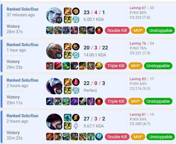 >>50562814 Ага, жёстко обоссал на сломанной параше, имея почти мастер ранг и закончив 7-7 (я закончил 7-5), учитывая что vs других лесников на этом рейтинге он играл так. Даже чалики-стримеры банят это говно и отказываются играть против этого. Вместо бана неприятного контрпика своего чемпа всем приходится тратить бан на эту имбалансную хуйню.