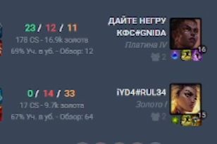 Мдеее. До абсурда доходит в плане лутания уебищ в команду. Вражеский топер может фидить 3-10, но иметь выше левел, чем моё чмо. Вражеский адкал может идти 2-10, но умудриться настакать нужное количество стаков. Враги могут сосать до 27-й минуты, но потом со счета 48-25 резко откамбекаться, выиграть файт у барона, а потом и у элдера. Причём 4 пидараса не в состоянии чем-то одним заняться, либо элдера зафокусить, либо вражескую команду отогнать. Литералли у сабхуманов абонемент на мозг закончился с 27-й минуты. Ихи и ганкаешь, им и линии бейбиситтишь, им и обьекты все даешь. Не, все равно мало, достаточно не дать еще сверху 2 обьекта, отогнав от каждого по 5 рыл, они сольются.