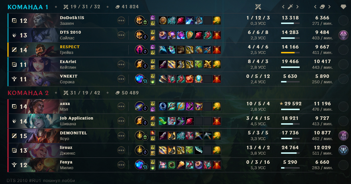 А то, что животные с бота прересрались в первые 3 минуты, в то время, как у врагов слажнное дуо с войсчатом - это тоже случайность. В итоге животина на кейтлин фиданула 1-6 до 15-й минуты и просто прожала кнопку выхода. После этого на 20-й и 25-й минутах тварина реконнектилась, очевидно, чекая, не закончили ли мы матч и, видя, что нет - ливала обратно.