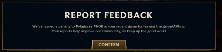Я жду, когда риоты введут афк бан детект систему, базированную на статистике по нанесённому урону по чемпионам в конце игры. На всех, за исключением саппортов не кастеров (на сапортах кастерах тоже учитываться должен дамаг по чемпионам)