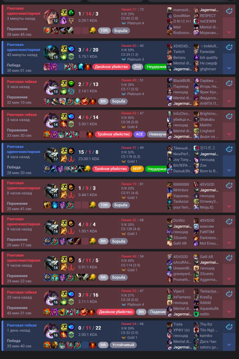 Такой пиздец, у меня буквально в каждой игре срито пулят две-три линии обосраные, а оставшаяся просто ровная, и снимают по 30 лп просто за что нахуй? я понял с эмеральда вылетел там за -0 лп типа теперь докручивают минус лп дополнительно, но я уже в п3 блять, а они не останавливаются и продолжают по 30 лп снимать, ахуеть. Вот эта поебота абсолютно совершенно искуственная тянется нахуй уже игр 10-15, просто сритоблядь решила ну все пиздуй с эмеральда будешь сидеть хз где ну щас в голдянку упаду потом также в эмеральд мне накрутят в ряд фривинов за 15мин и че блять когда нормальная игра начнется, почему я на этих качельках уже блять раз 10 катаюсь? Туда-сюда с эмеральда в платину и обратно.