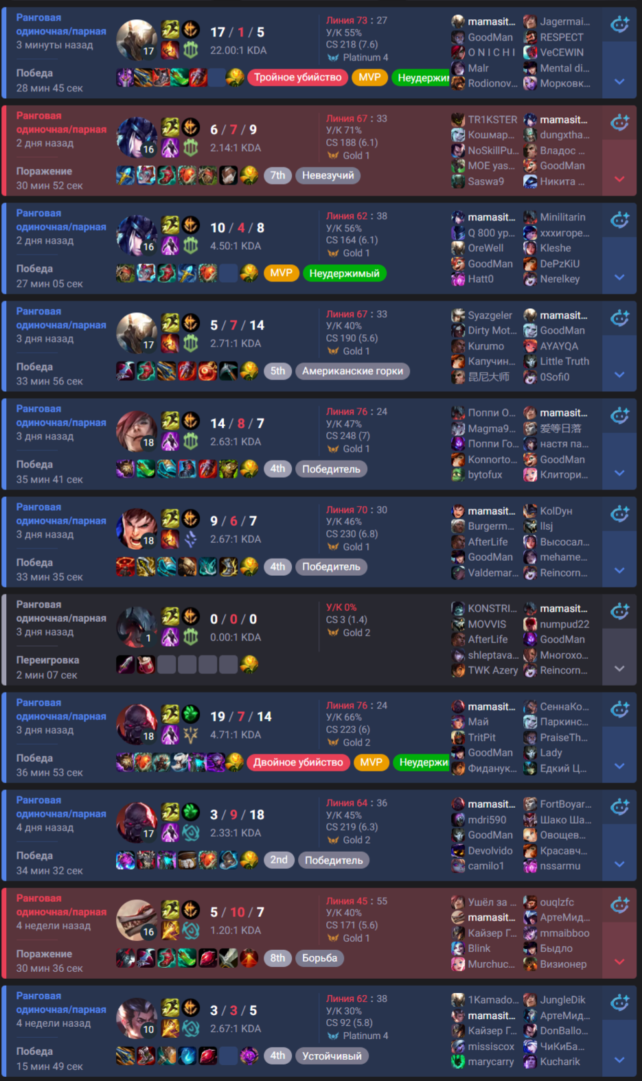 Я в этом году уехал из д4 в сильвер4 на мейне, потому что решил играть рандомным калом на других ролях. Буквально с бронзой и даже айронами играл в итоге.