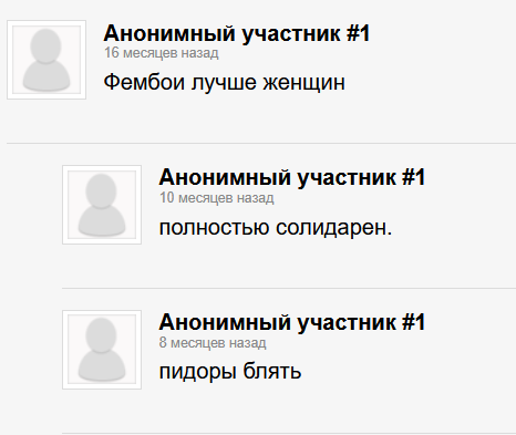 >>50457951 >галлерею Как задетектить долбаеба? Очень просто - безграмотный кретин пишет слова раса, кал, мана, и многие другие - с удвоением. Видите в посте РАССА, КАЛЛ? Знайте - перед вами эпический долбаеб, способный проебаться даже там, где проебаться априори невозможно (например, в изучении базовых правил языка, на котором всю жизнь говоришь), казалось бы, и вся жизнь его - это учебник того, как делать НЕ НАДО. Уровень идиотизма этого тела настолько высок, что любое, практически, суждение, им высказанное - это просто инструкция "как проCCрать все полимеры". НоудискаCC. Встретили такого - бейте его палкой, гоните отовCCюду, наCCмехайтесь.