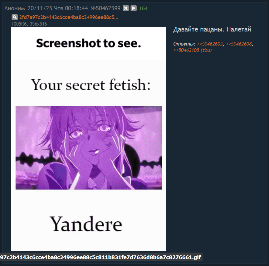 >>50466444 Но я эту картинку здесь изначально и запостил. Я её скачал первым, она принадлежит мне, а не дырочкотреду и я имею полное право запостить её там, где я захочу.