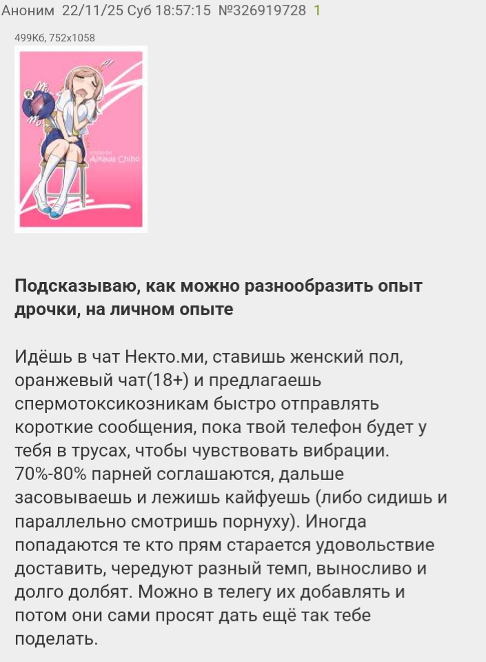 >>50488920 >Там же огромный пласт контента по превращению его в девочку этими двумя суками