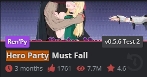 Безусловно это Hero party must fall, лучшая нетори с топовым корраптом на сегодняшний день, как минимум из западных так точно. Играем за Марса, демона который внедряется в пати героя чтобы найти возможность развалить её и прервать цикл насилия и убийств королей демонов. Мейн тянка игры это еще и один из двух маскотов треда. Там еще и осталось до финала ровно 2 патча, игра почти закончена.